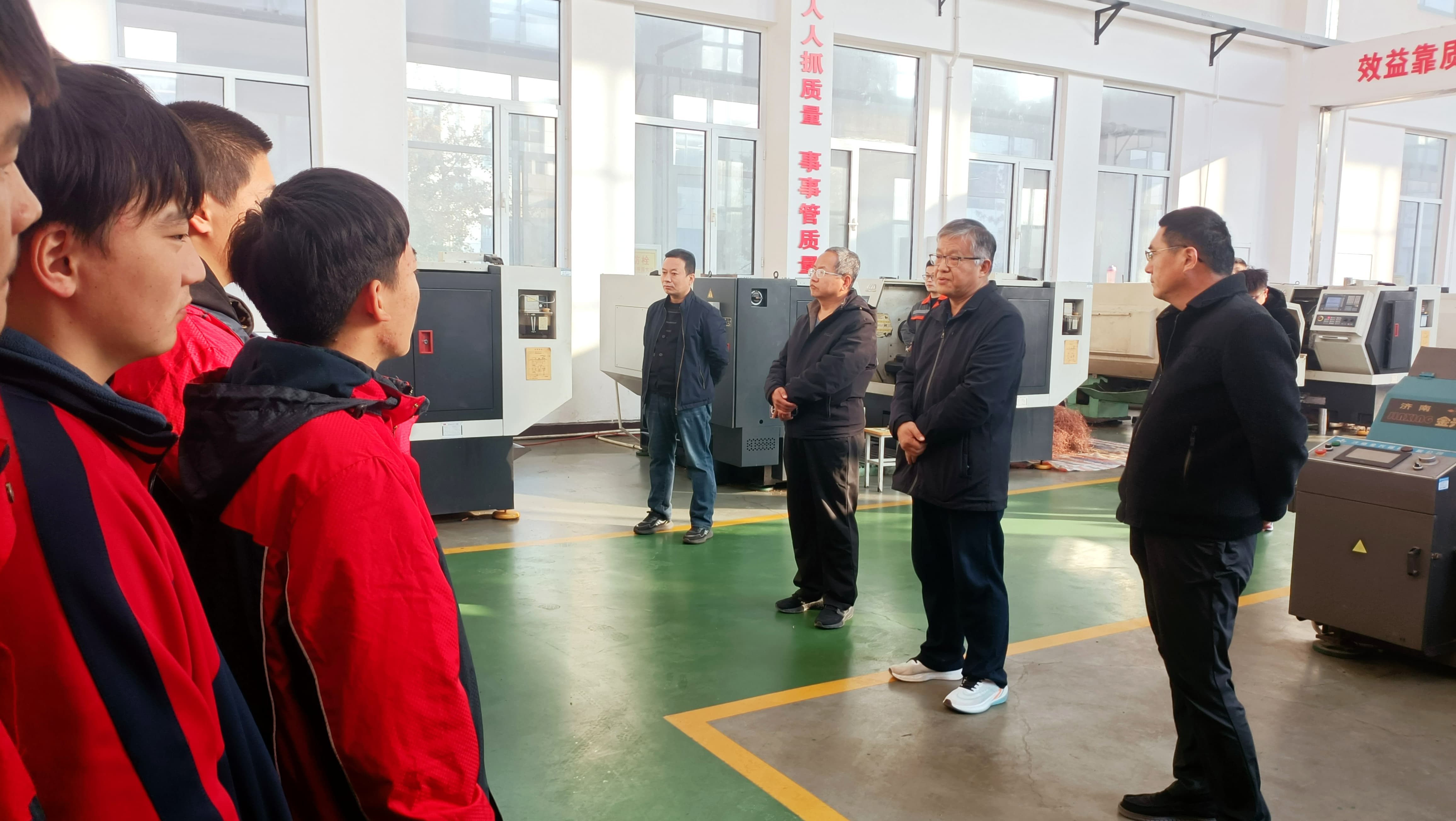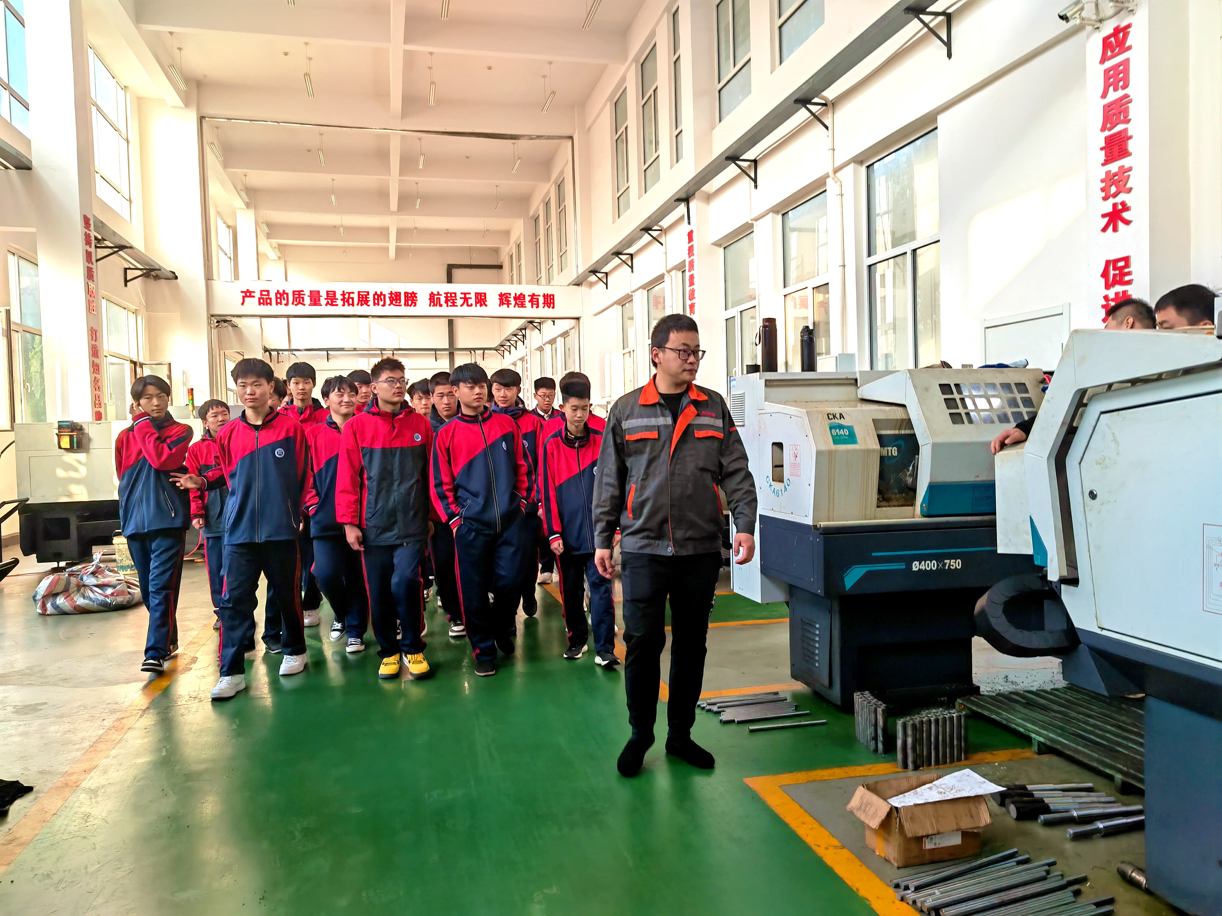 企业技师苗增满与我校带队教师戚娟娟、牛云祥、靳志华等,就安全操作、实习内容、考勤管理等具体事项作了详细安排。仪式结束后,师生共同参观了实训车间,现场观摩数控工艺流程。这种“零距离”的接触,使同学们对即将开始的实习生活充满了期待与信心。