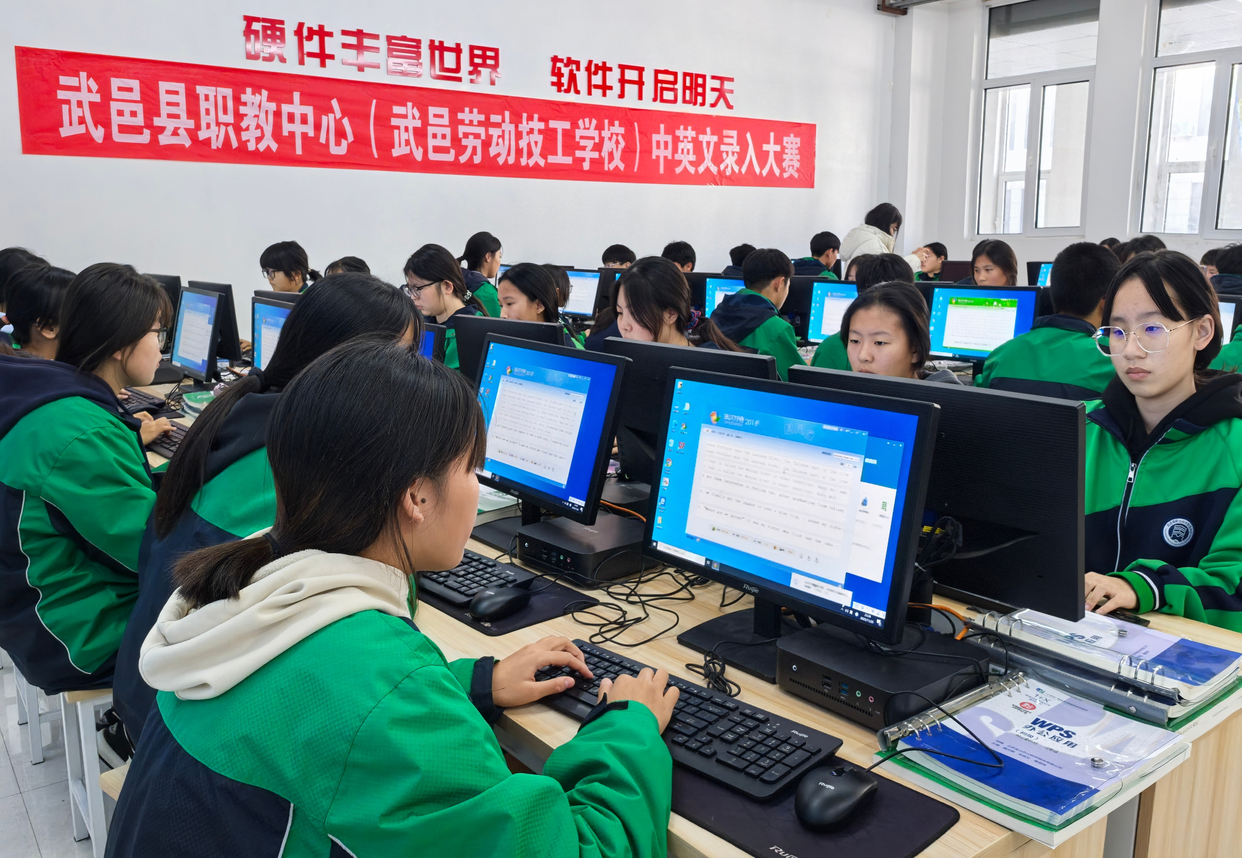 本次大赛设置中文录入、英文录入两大竞赛项目,以10分钟为时限,采用“效率与质量双维度”评分体系,既考察录入速度,更注重操作精度。赛场上,同学们专注凝神,指尖在键盘上轻盈起落,一串串跃动的字符,生动展现出职教学子的专业素养。