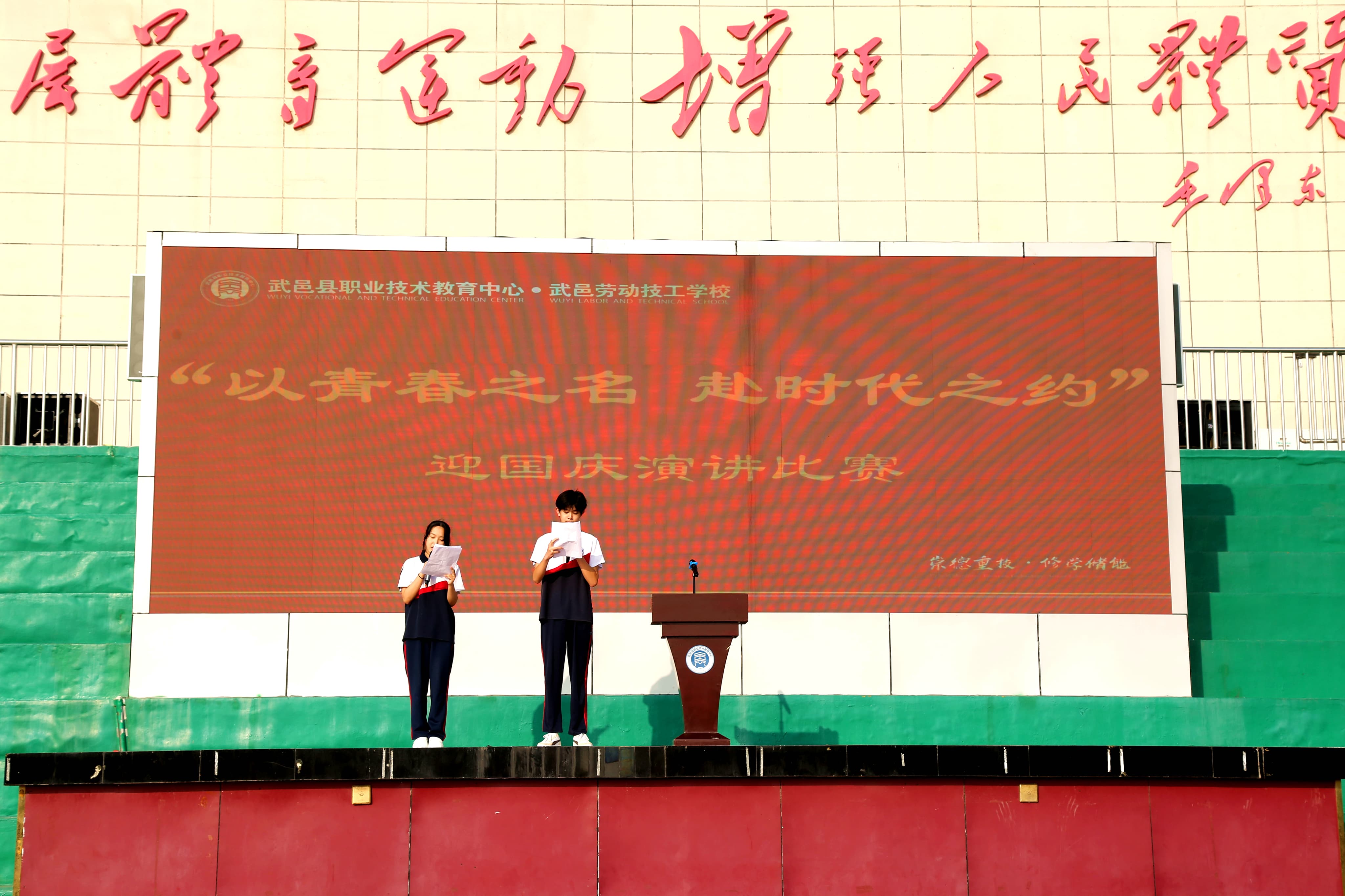 9月30日,在学校操场,选手们齐聚一堂,用激昂的文字和饱满的热情,共同讲述那些关于爱、关于梦想、关于奋斗的故事。比赛过程中,选手们紧扣“以青春之名 赴时代之约”的主题,结合个人经历、社会热点、国家发展等方面进行创作。每一位选手的演讲都充满了正能量,深深感染了在场的每一位听众。