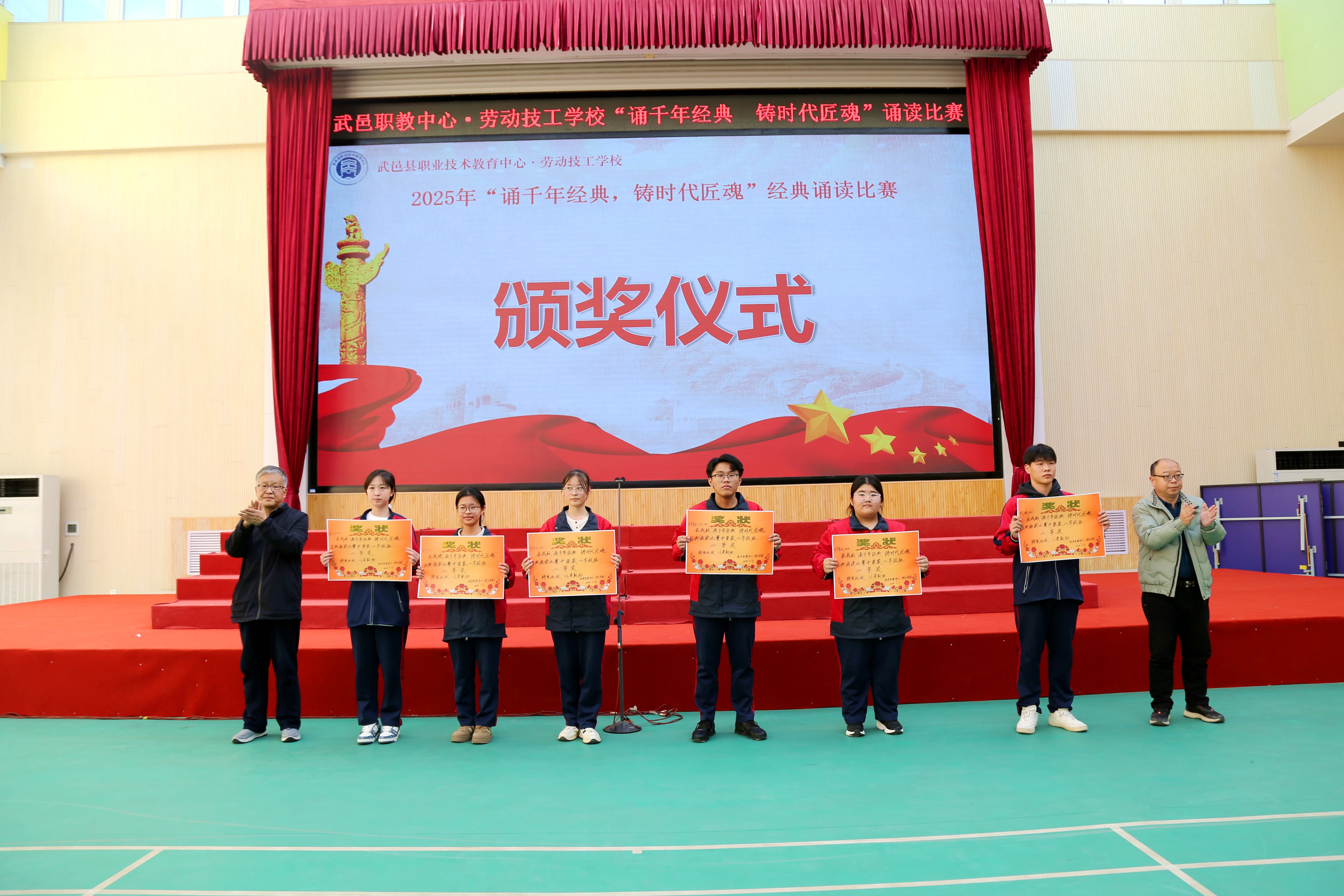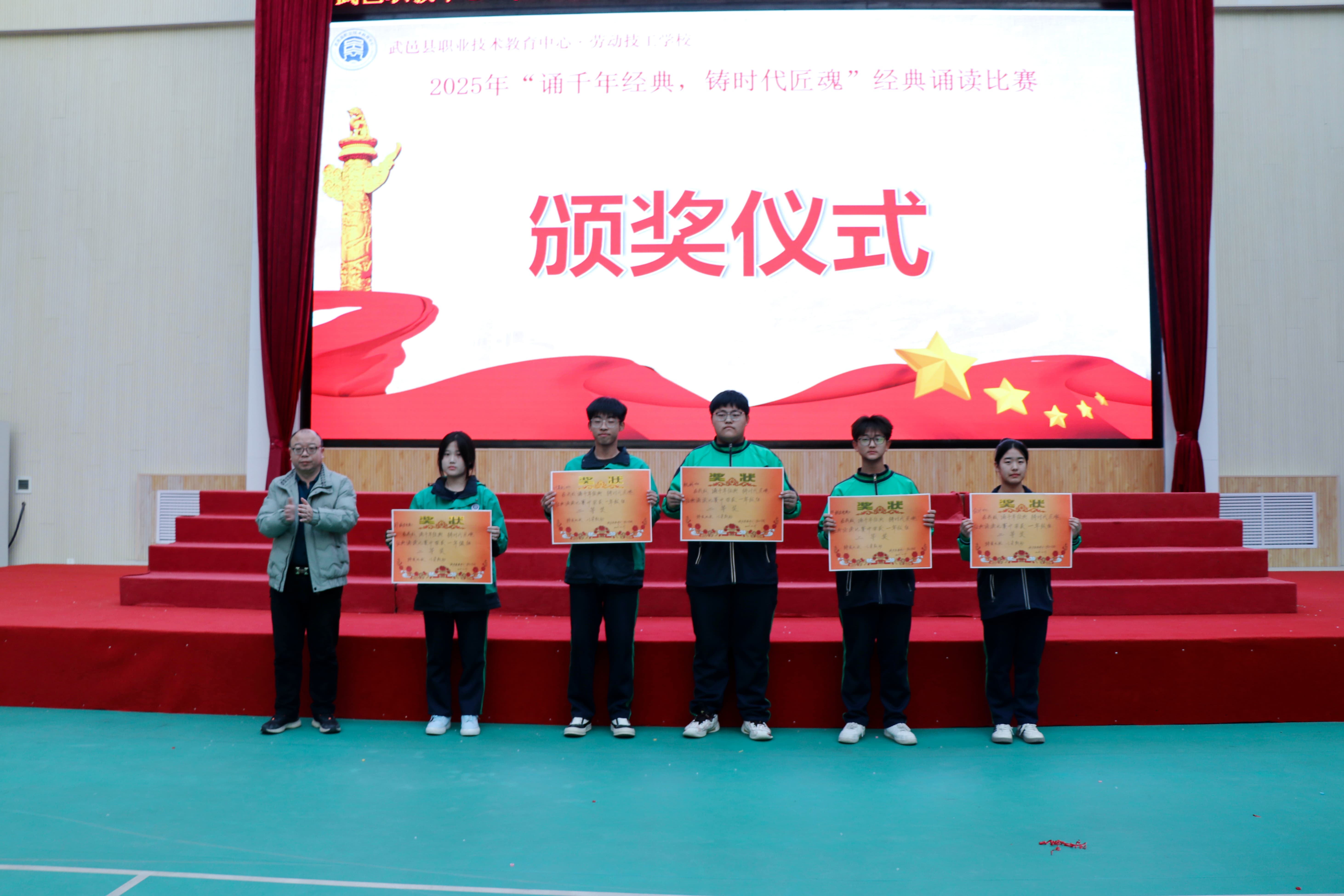 活动尾声,副校长马斌在总结讲话中肯定师生的付出并寄语:全校师生要以此次大赛为新起点,将经典中的智慧力量融入专业技能学习,让工匠精神融入血脉、根植于心,在诵读经典中涵养匠心,以青春之力书写时代华章。