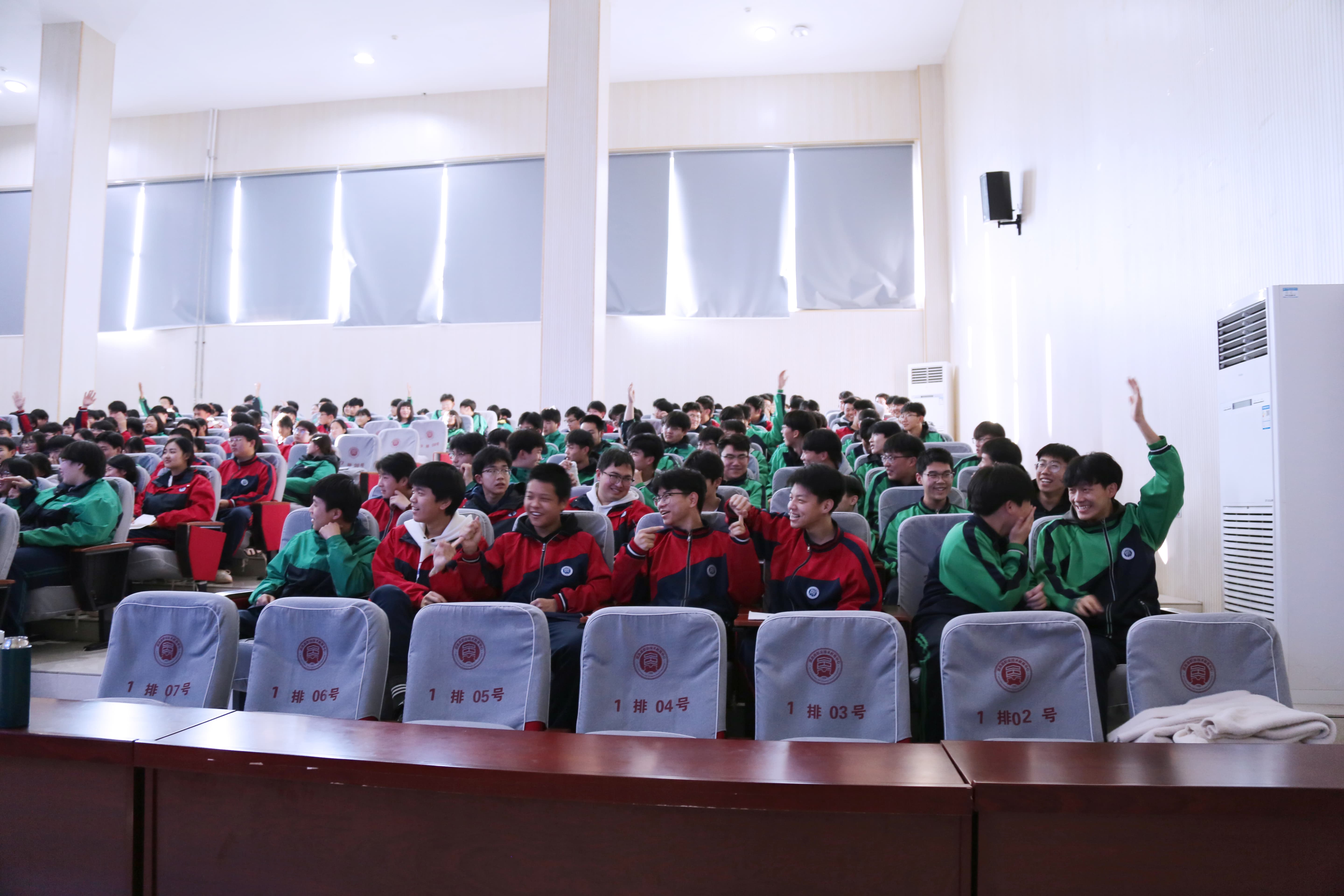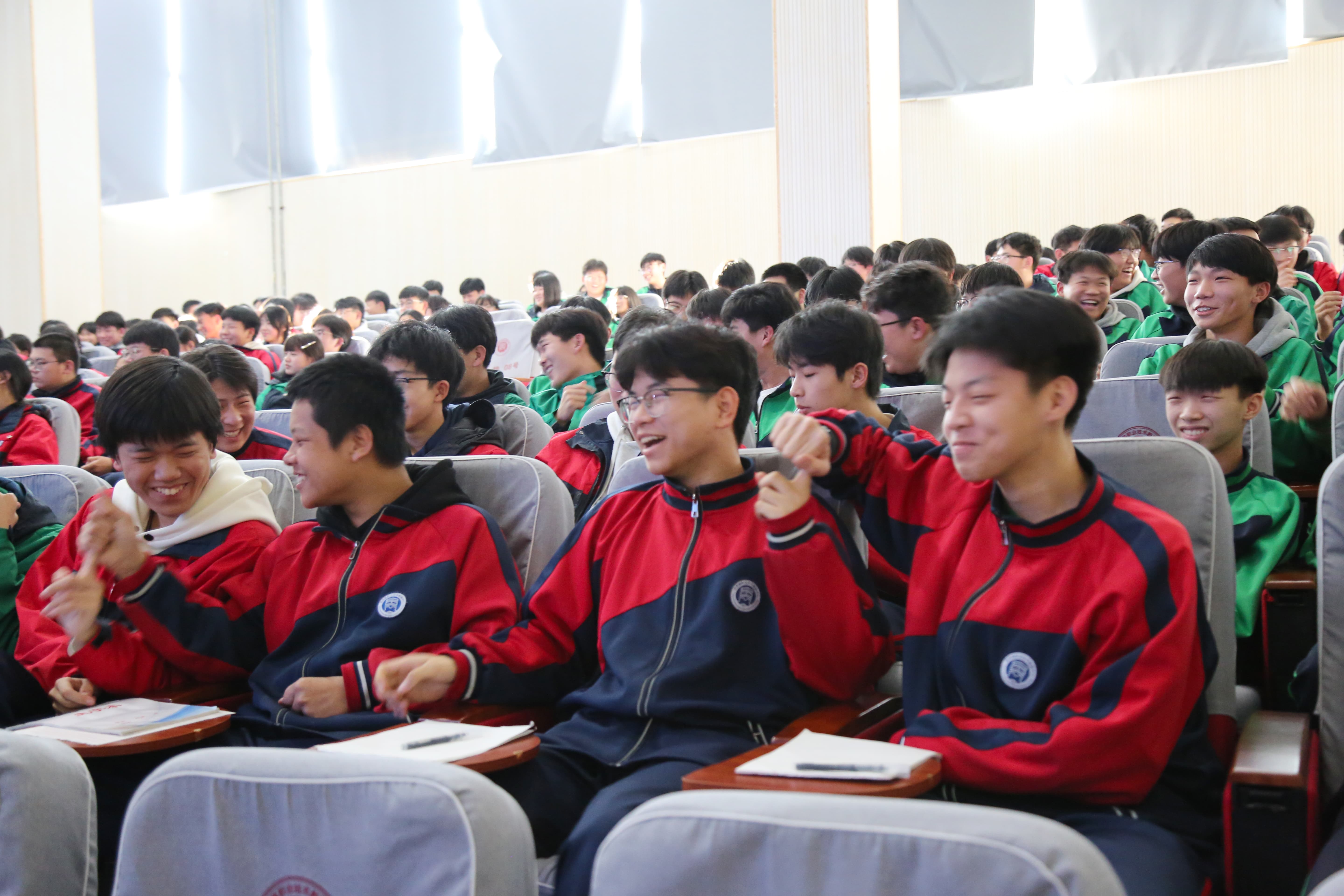 在“解码真正的成长力量”环节,白老师围绕“勇气、骨气、志气、霸气、和气”五大维度,组织现场学生深度互动。通过沉浸式体验与热烈探讨,同学们深刻体会到:唯有“五气”相融共生,方能构建完整的人生成长体系,实现从自我觉醒到自我实现的跨越,最终成长为内心强大、心怀温暖的个体。