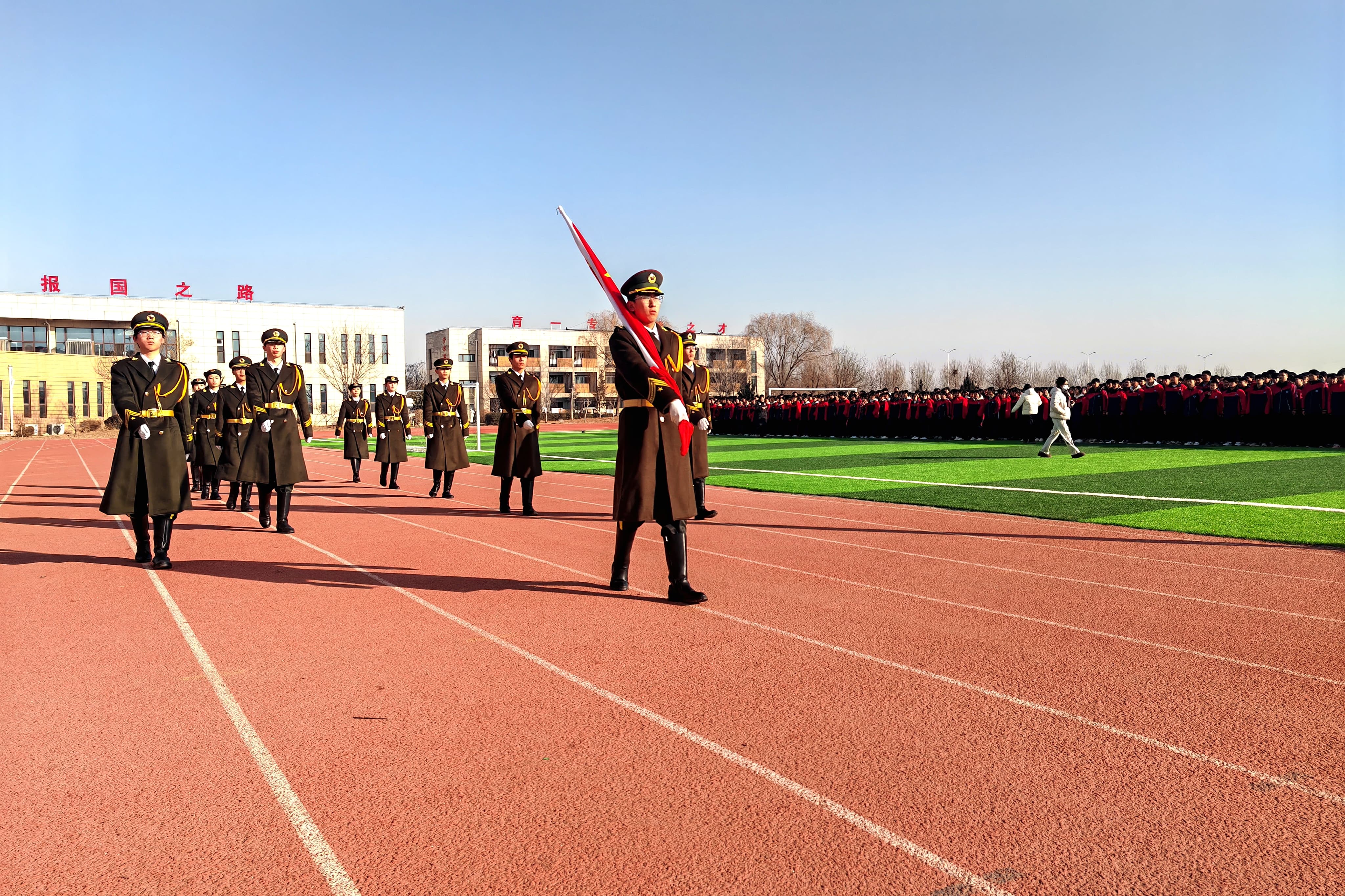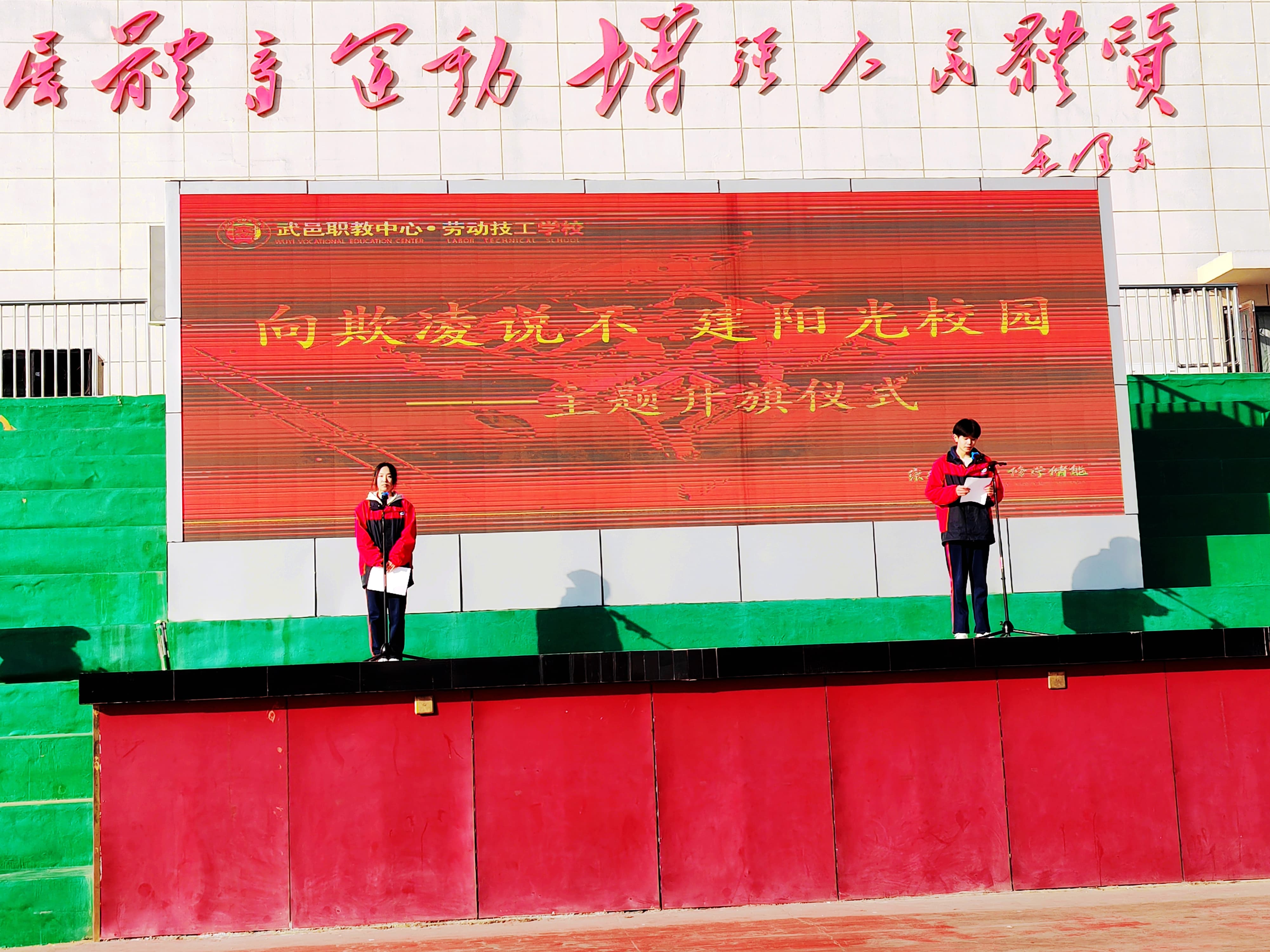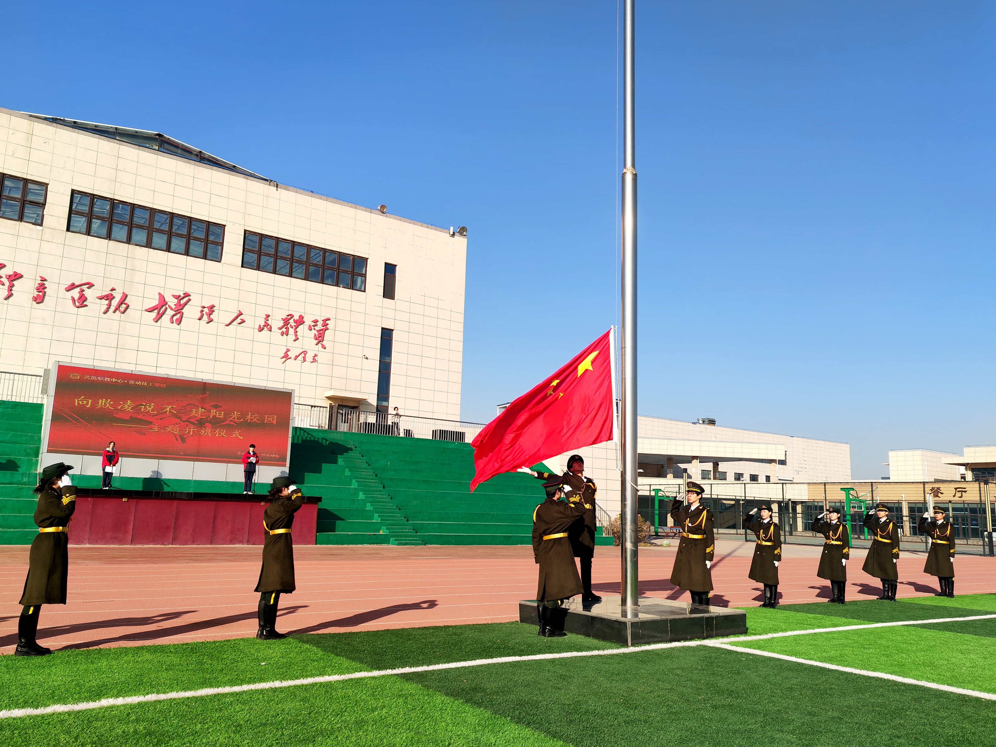 为抵制校园欺凌,营造安全温馨的校园环境,1月12日,我校举行“向欺凌说不 建阳光校园”主题升旗仪式,全体师生齐聚国旗下,共同传递拒绝欺凌、守护校园安全的坚定信念。