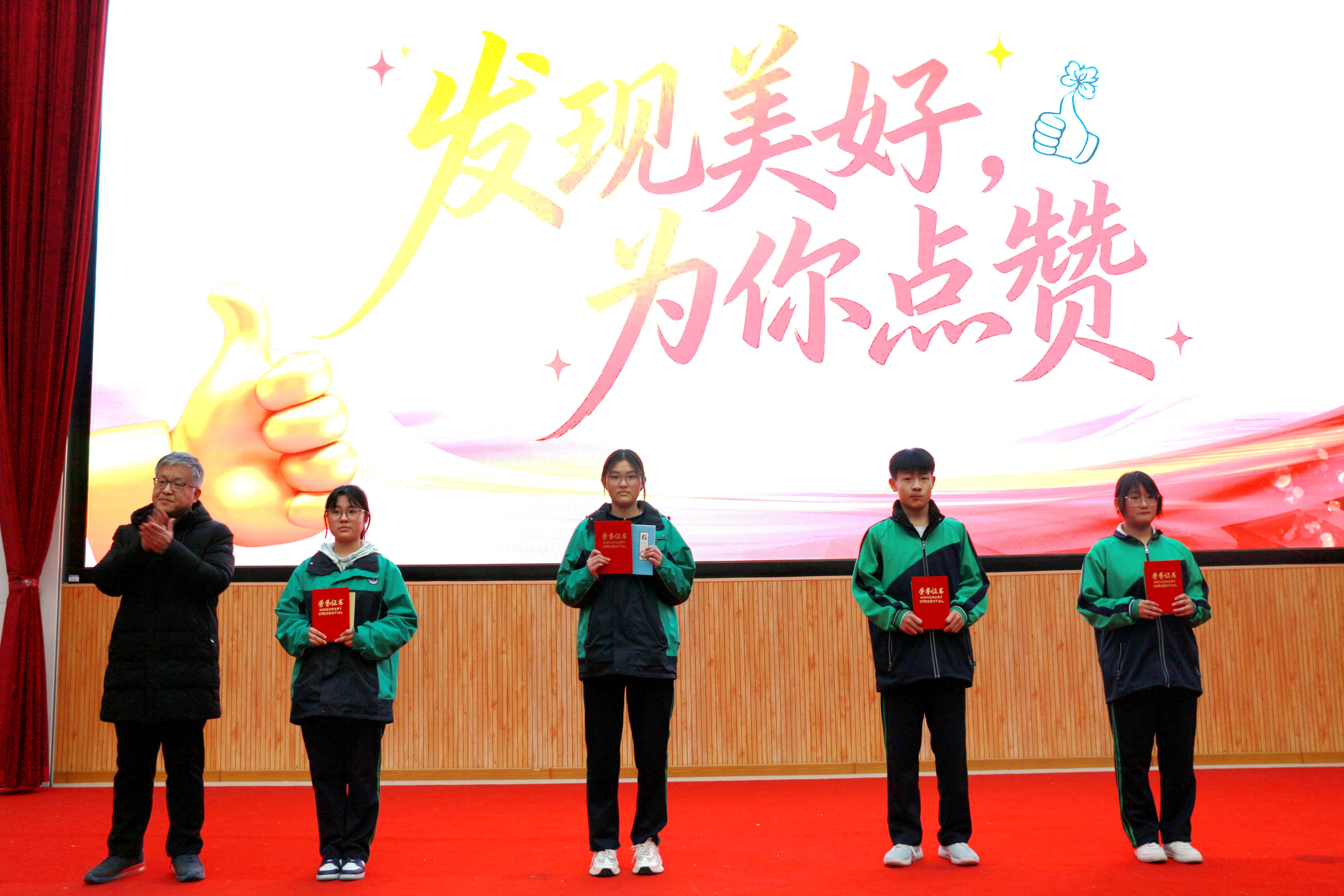本次大赛按年级分别设奖,每个年级评选出一等奖2名、二等奖4名、三等奖6名及优秀奖10名。学校为获奖选手颁发荣誉证书与奖品,既是对他们精彩表现的肯定,也鼓励更多同学主动发现美好、传递美好,让赞美之风浸润校园每一处角落。