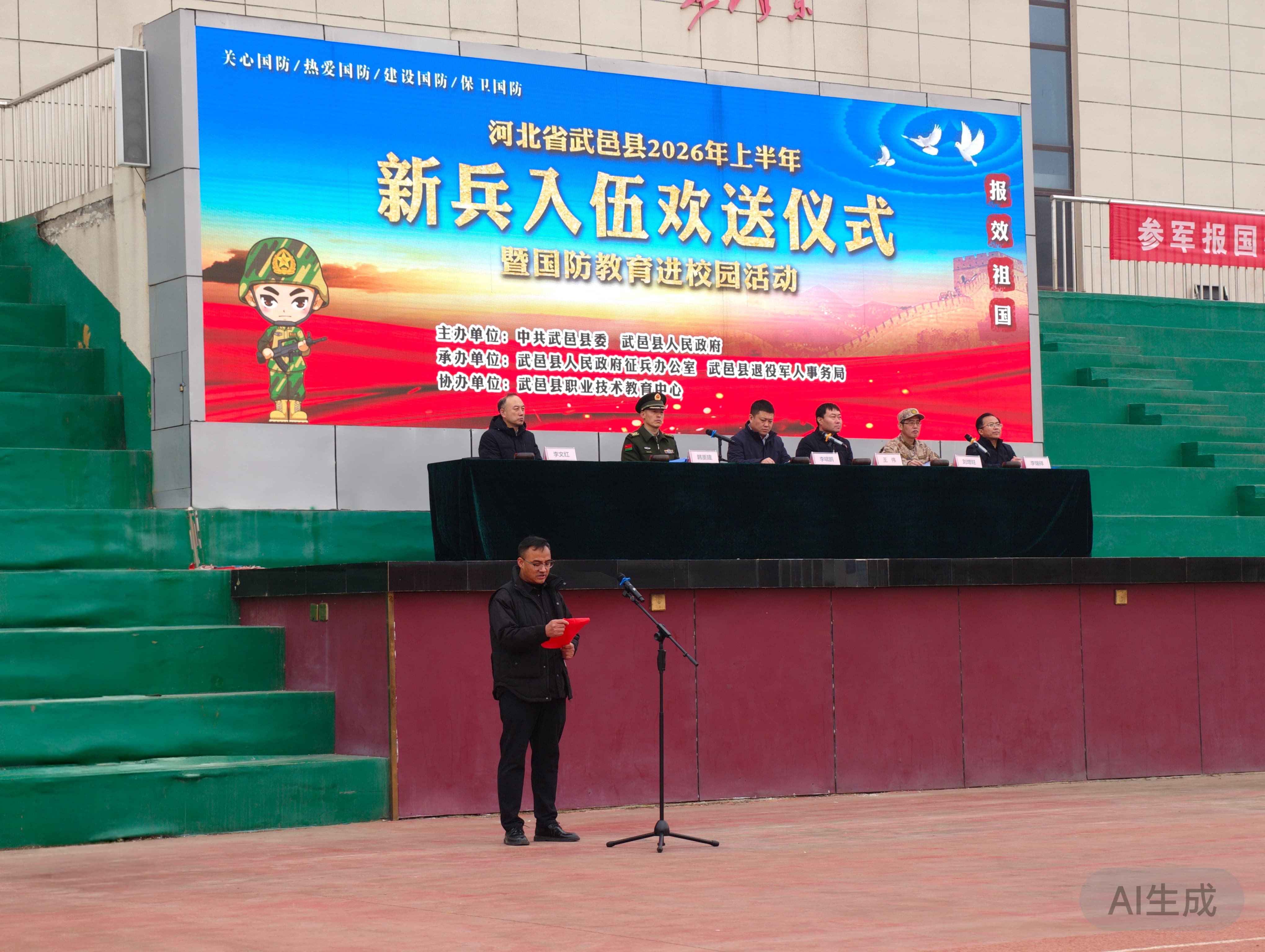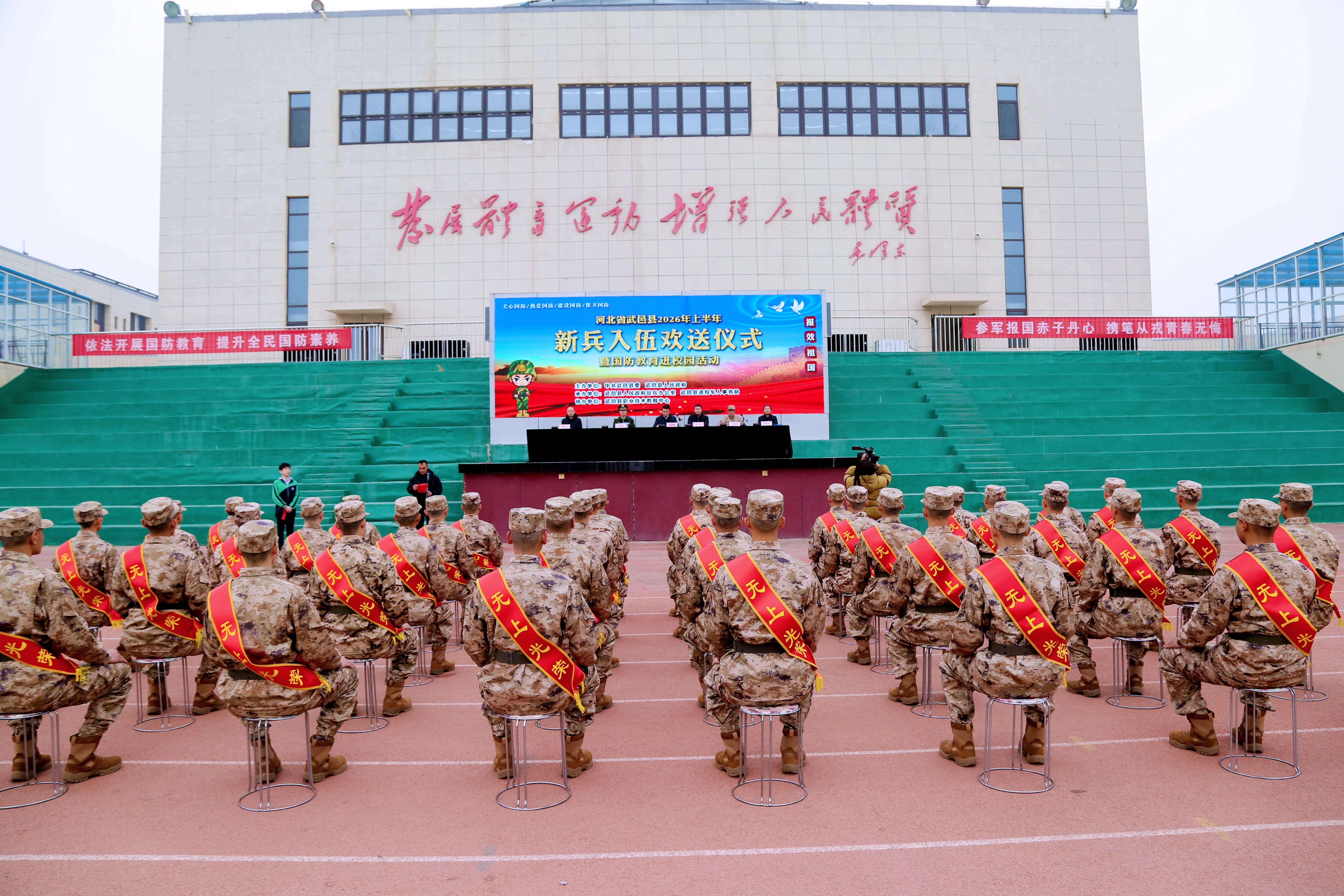 热血赴军营,青春铸荣光。为深入开展全民国防教育,厚植青少年爱国强军情怀,3月13日,武邑县2026年上半年新兵入伍欢送仪式暨国防教育进校园活动在我校隆重举行,为即将奔赴军营的热血青年壮行,为全校师生上了一堂生动鲜活的国防教育课。