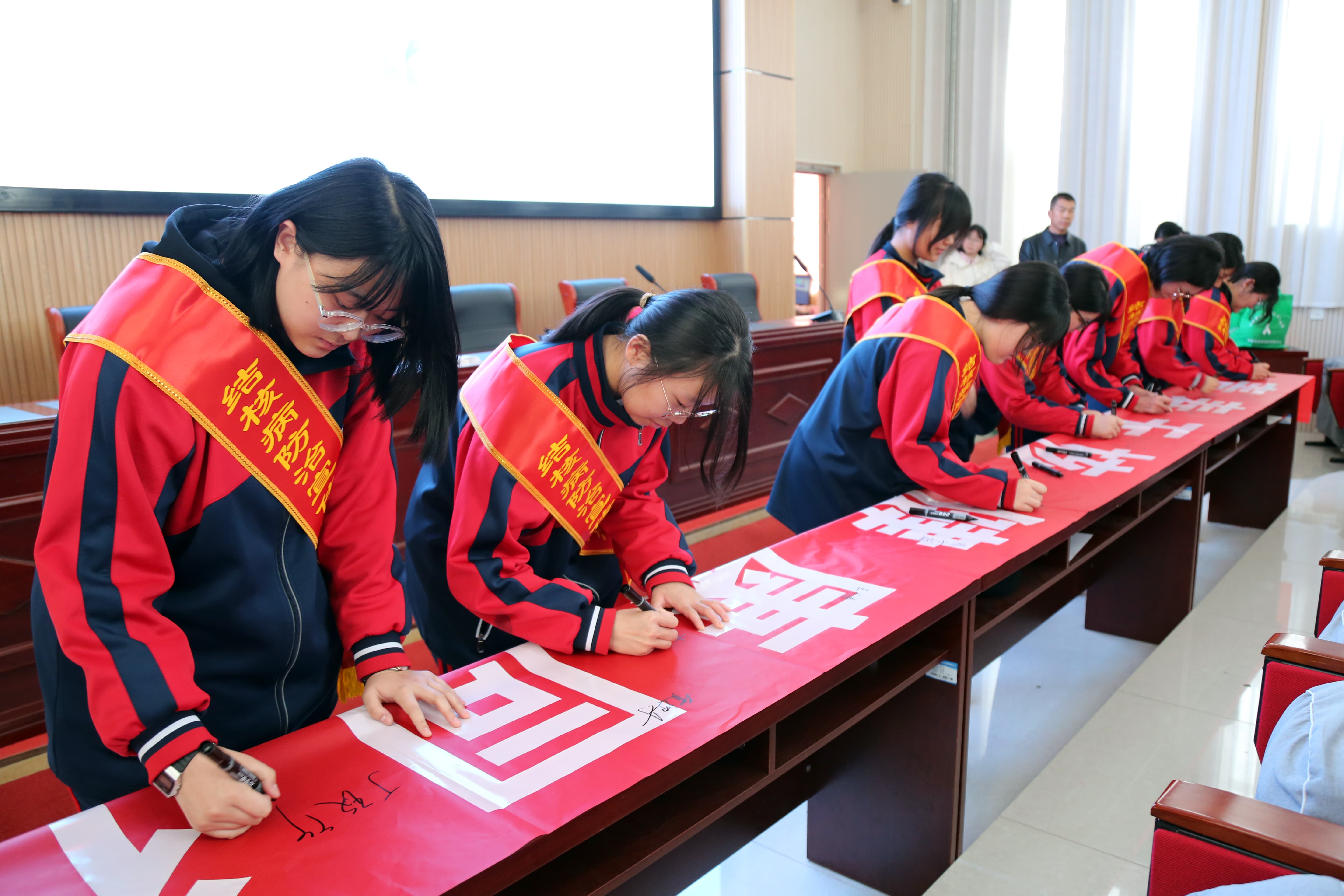 随后,志愿者和部分参会师生在“青春无核 健康同行”条幅上郑重签上自己的名字,传递防控结核的坚定决心。