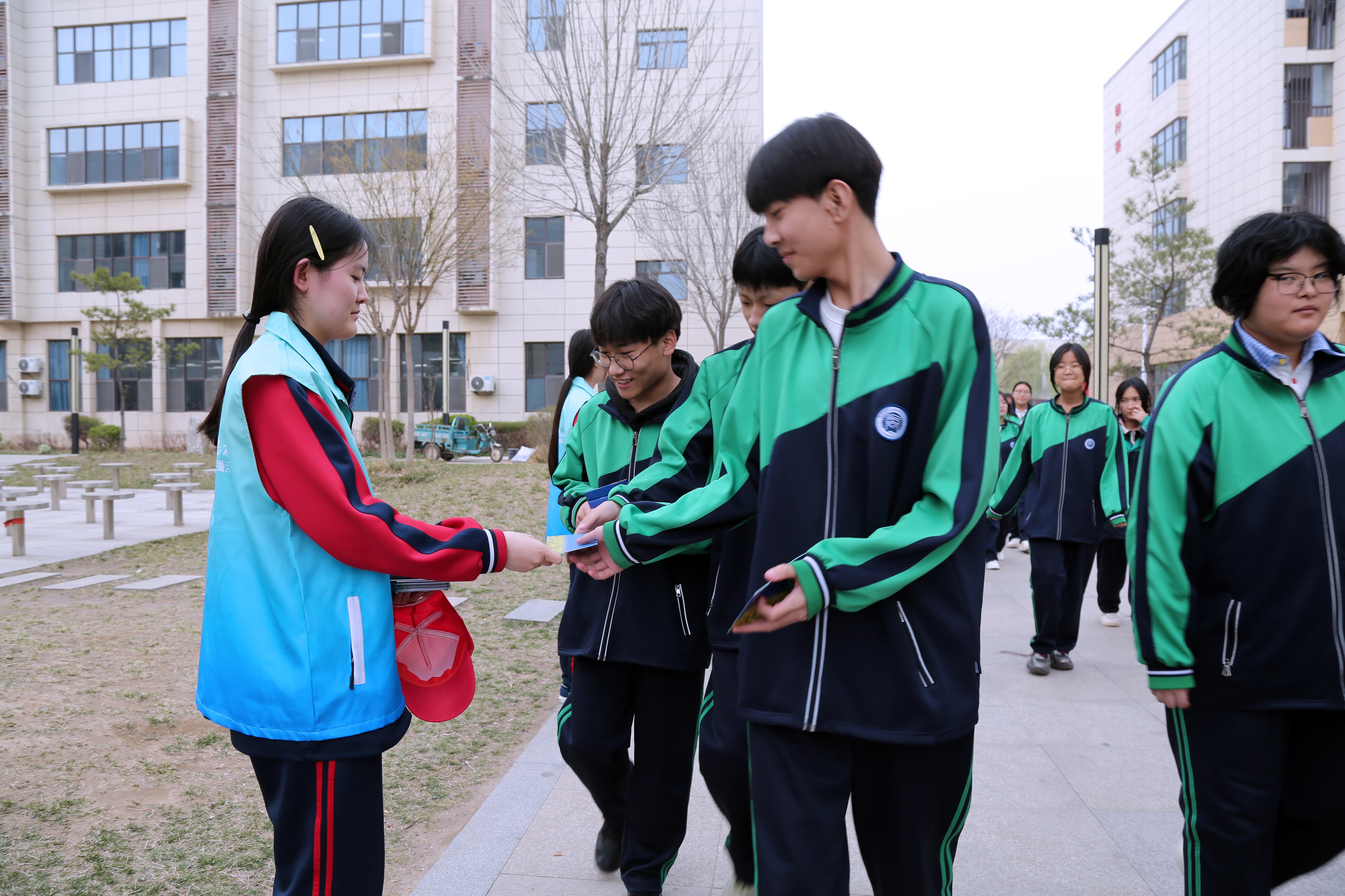 最后,志愿者们在校园甬路、班级等处发放结核病资料,向师生普及结核病的传播途径、常见症状、预防措施及国家免费治疗政策。志愿者们还耐心细致地为同学们答疑解惑,纠正大家对结核病的认知误区,引导大家养成勤洗手、多通风、不随地吐痰、加强体育锻炼的良好卫生习惯。