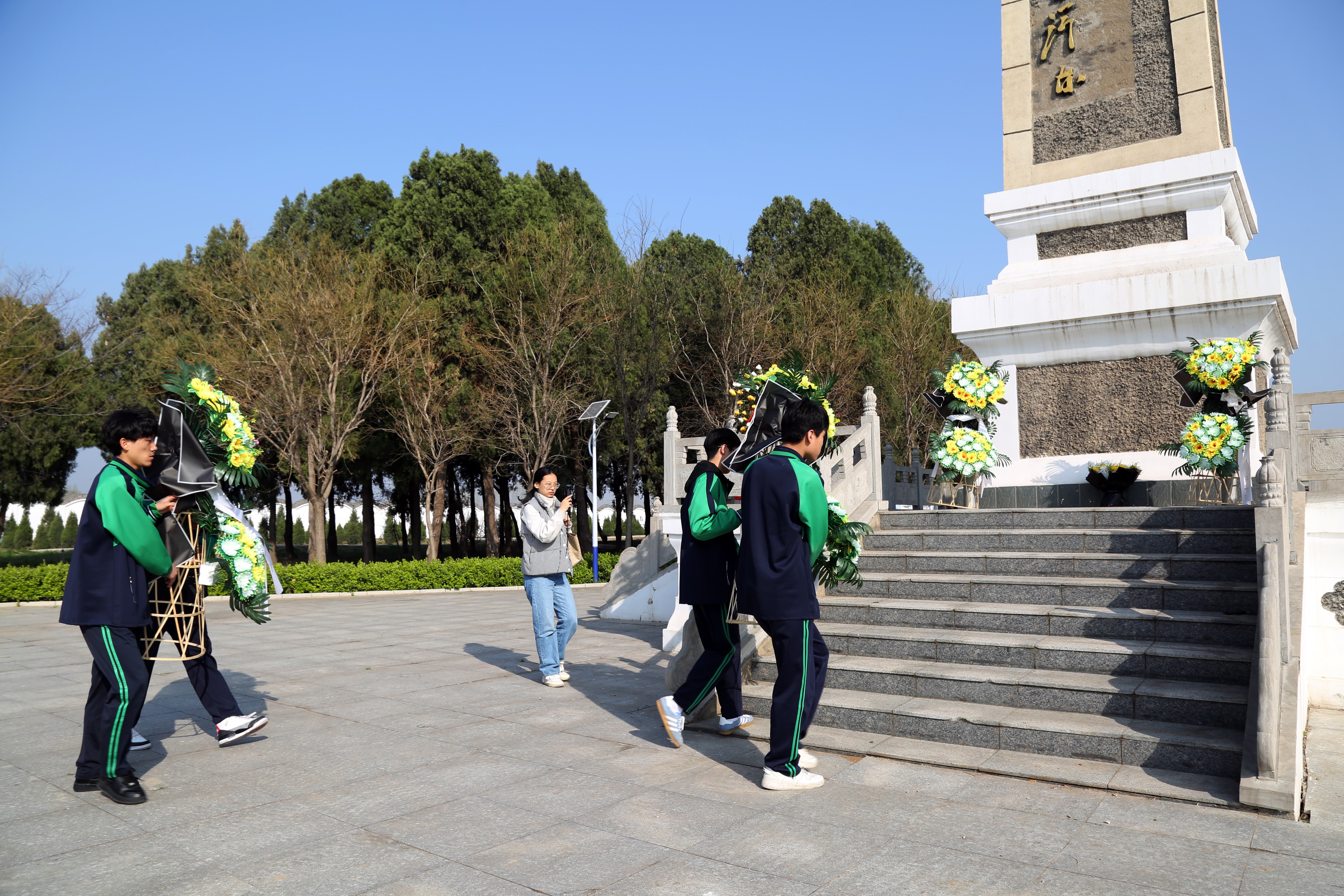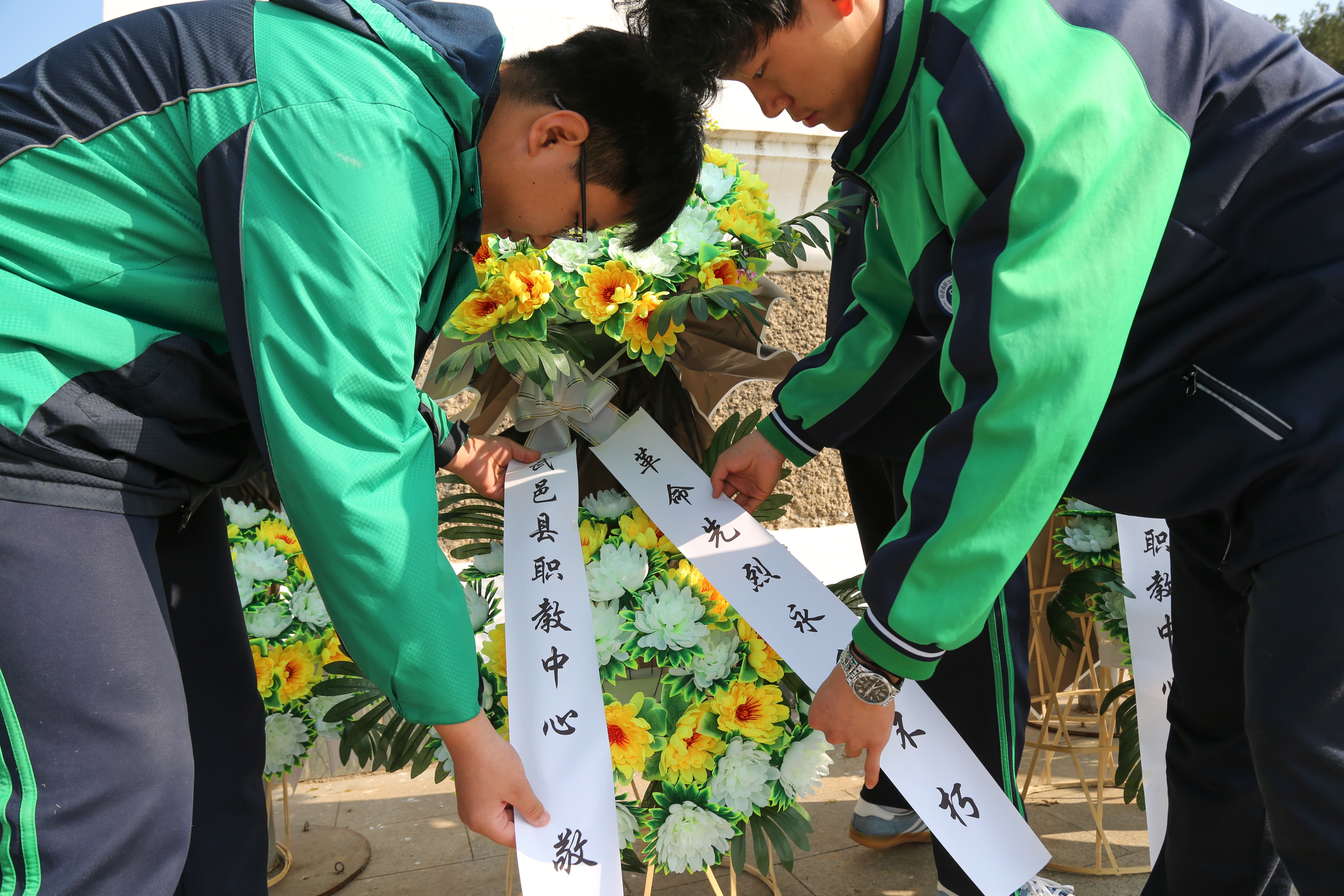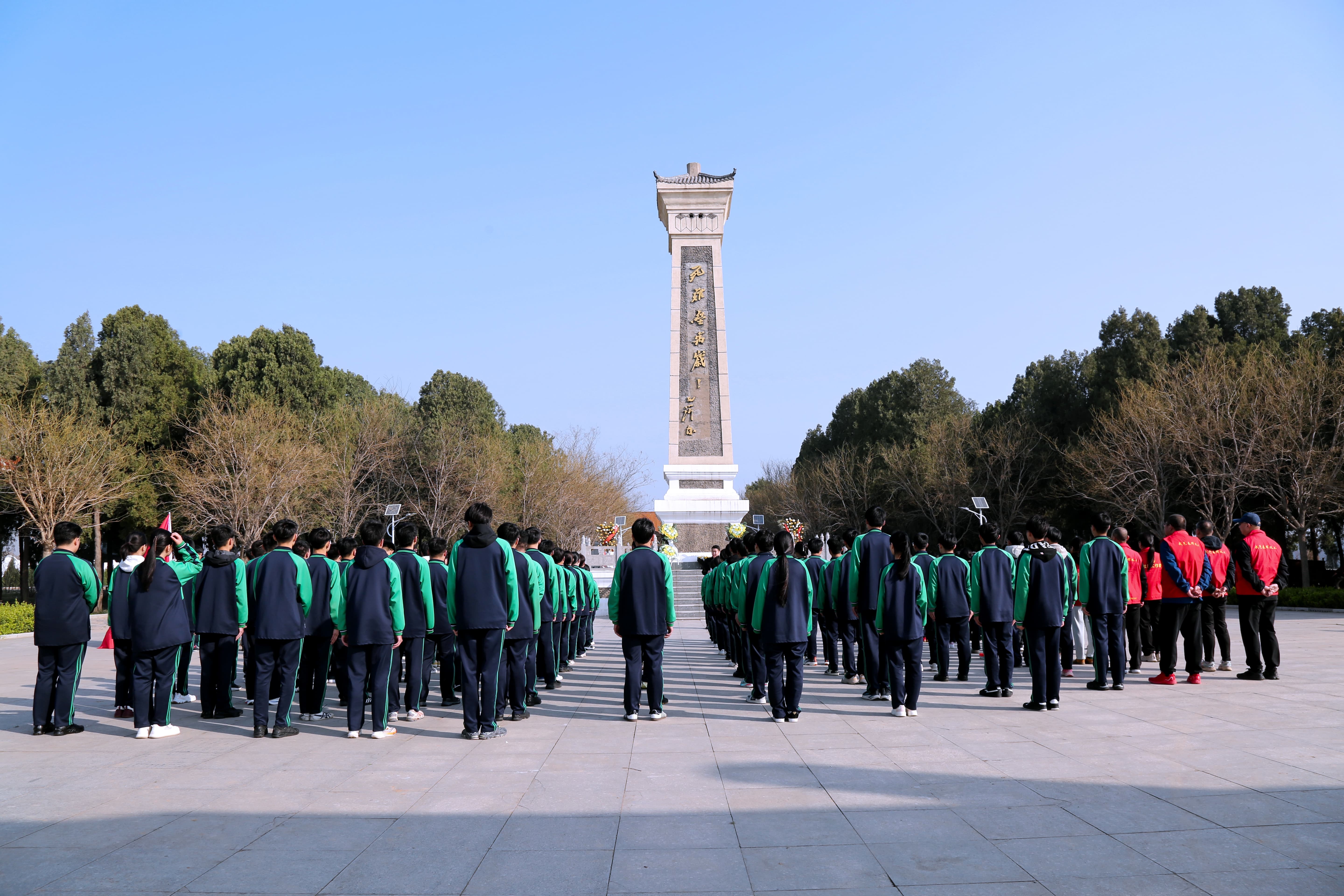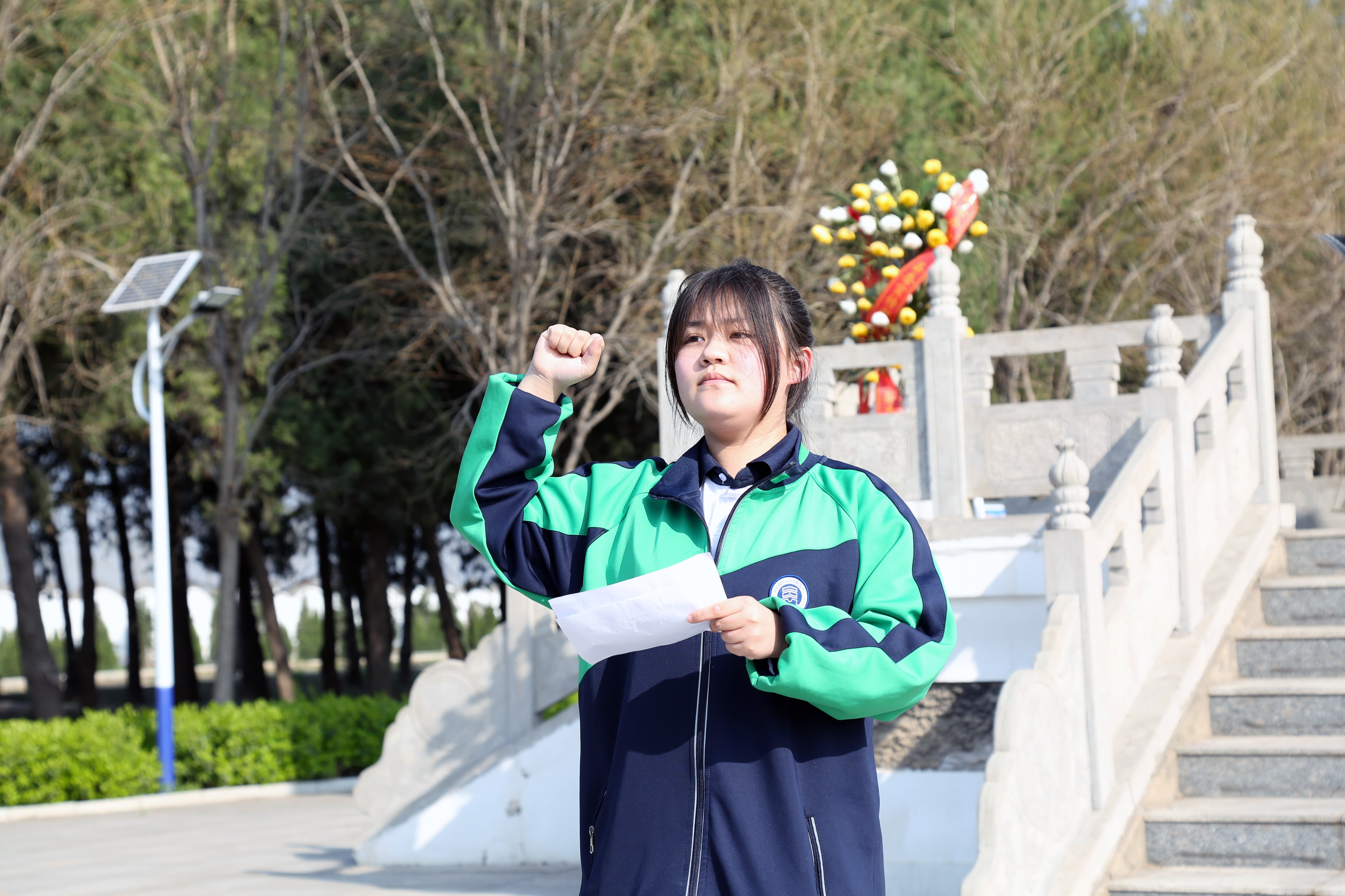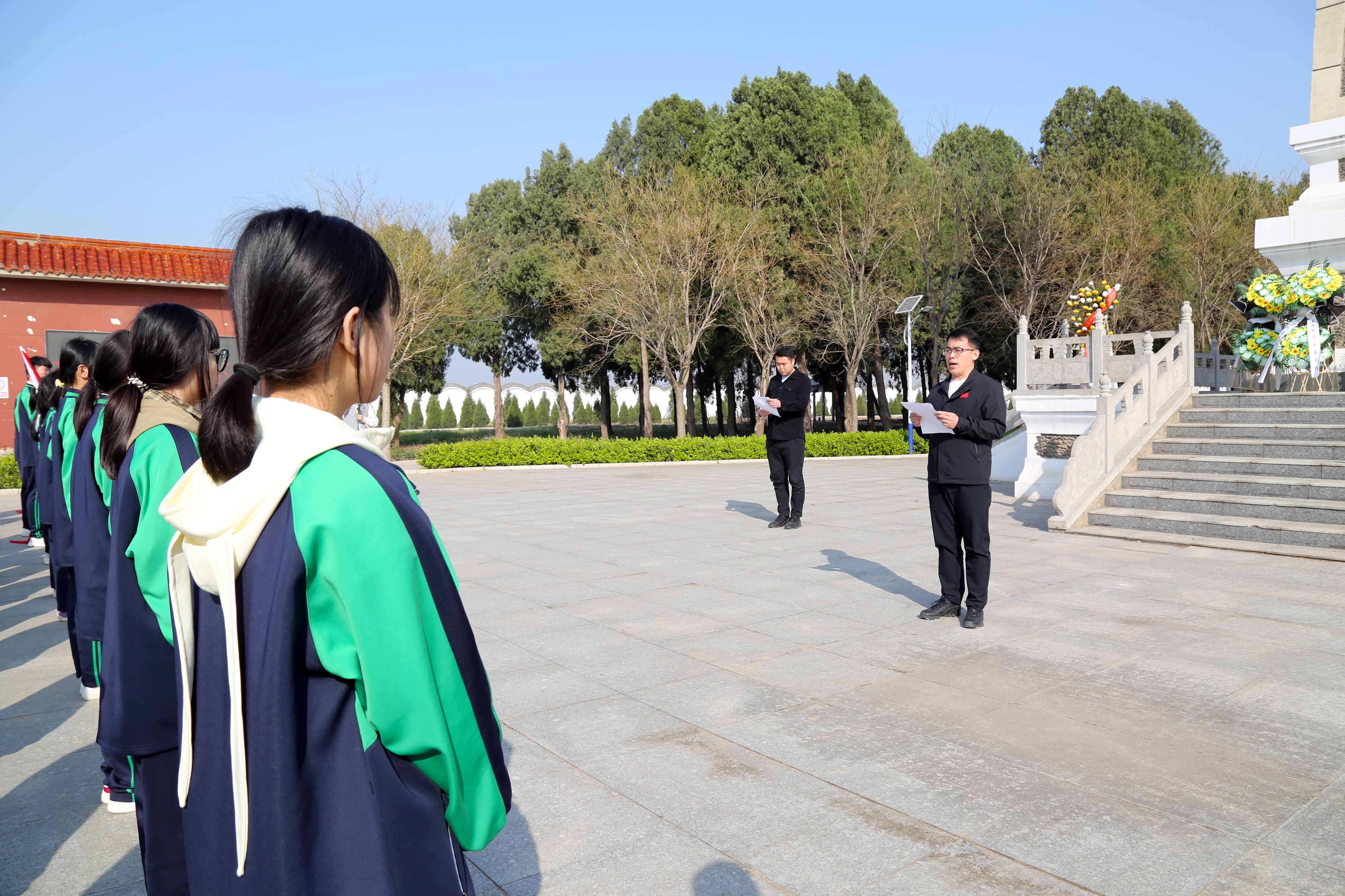 学生代表李海鑫带领全体同学庄严宣誓。“继承先烈遗志,砥砺奋斗前行……”铿锵誓言在陵园上空久久回荡,展现了职教学子矢志追梦、不负韶华的坚定信念。