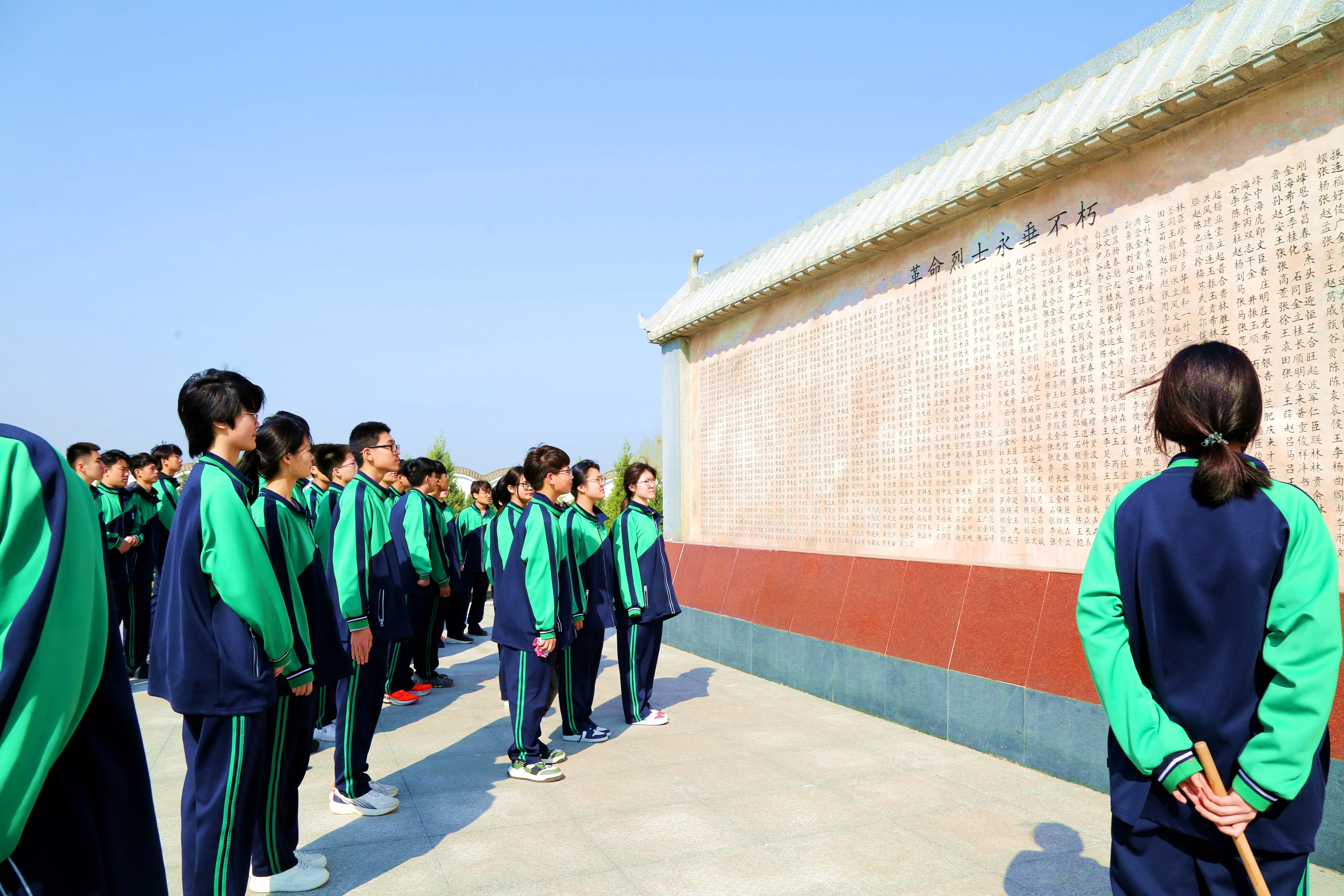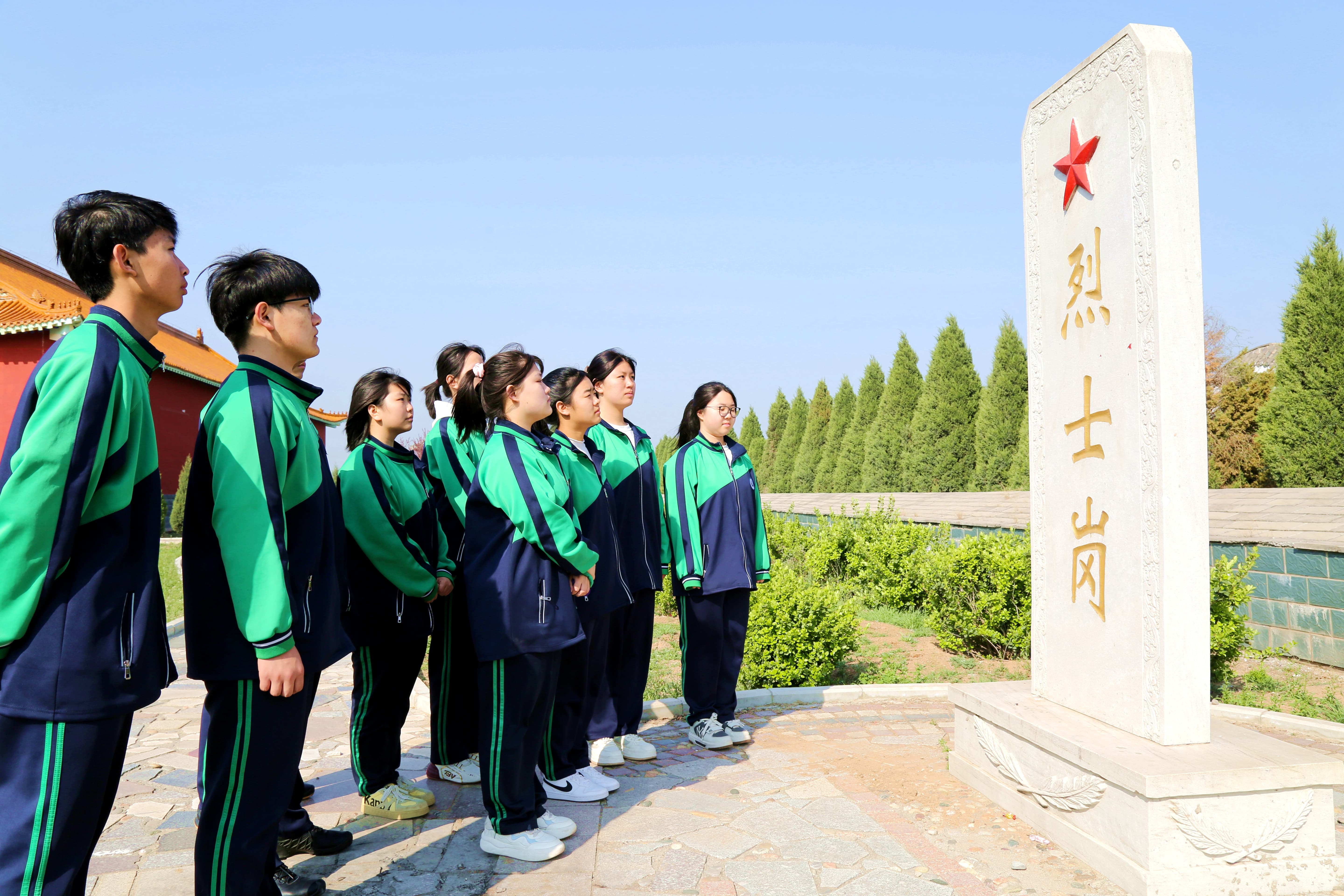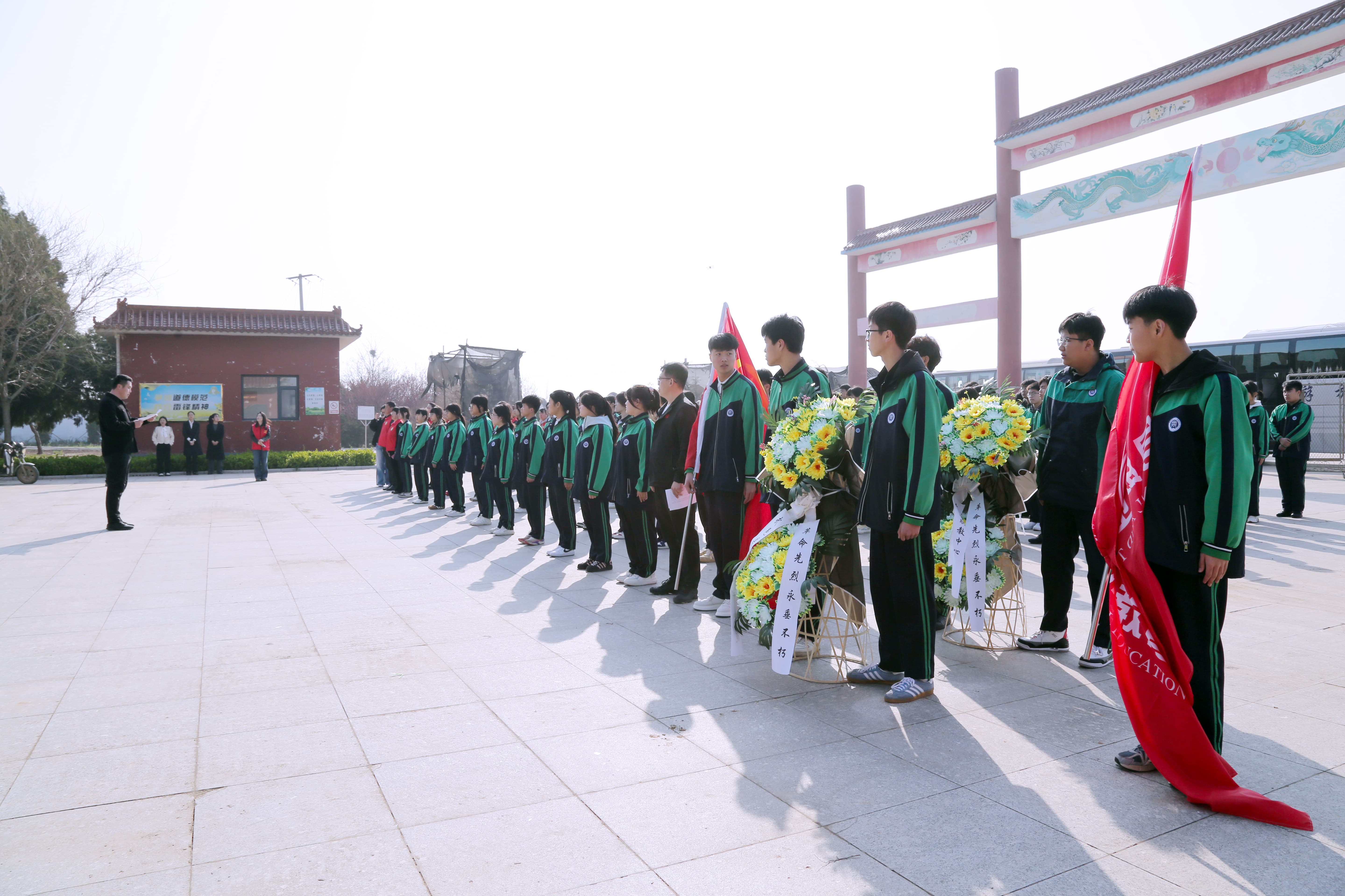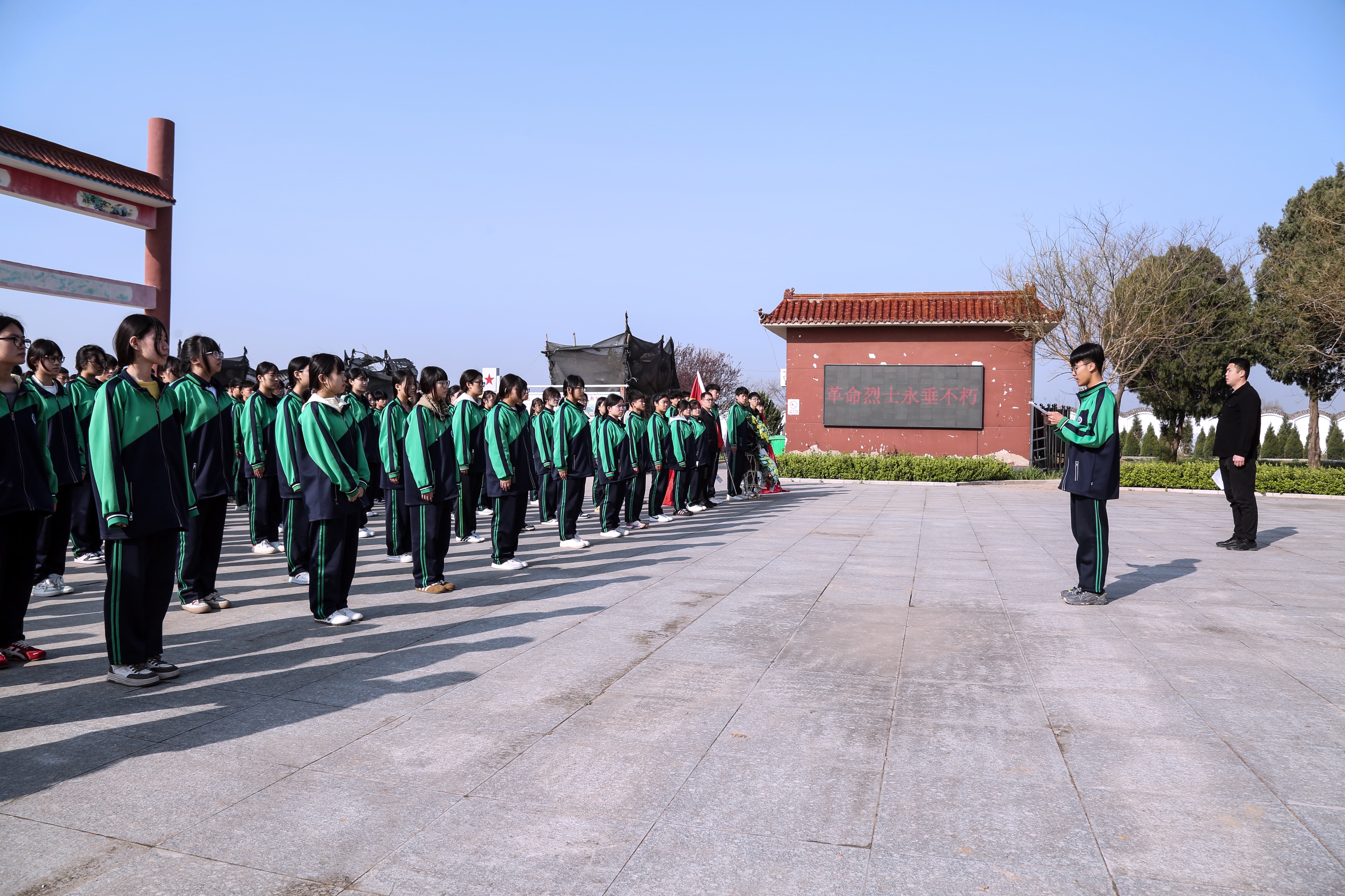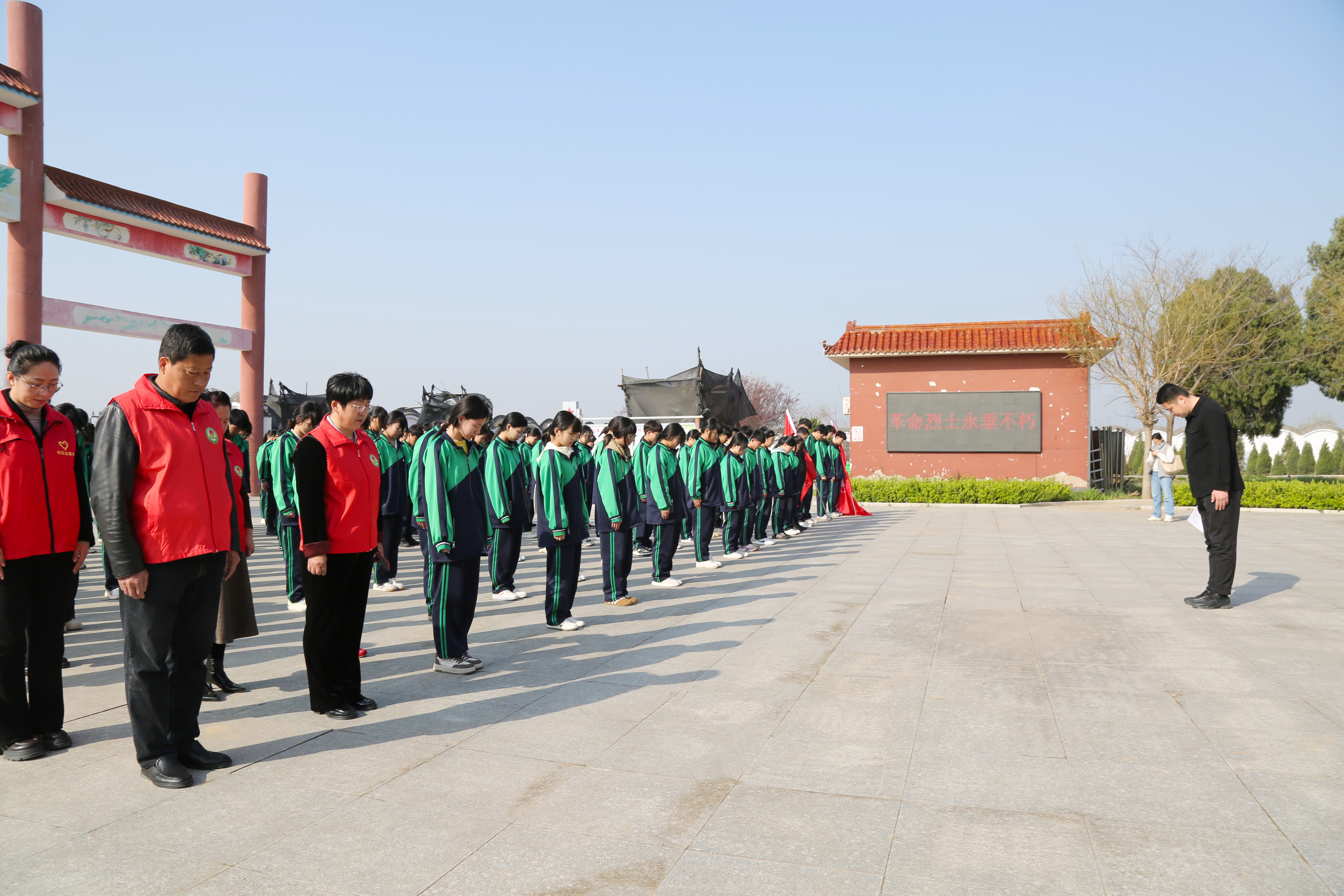 学生代表李海鑫带领全体同学庄严宣誓。“继承先烈遗志,砥砺奋斗前行……”铿锵誓言在陵园上空久久回荡,展现了职教学子矢志追梦、不负韶华的坚定信念。