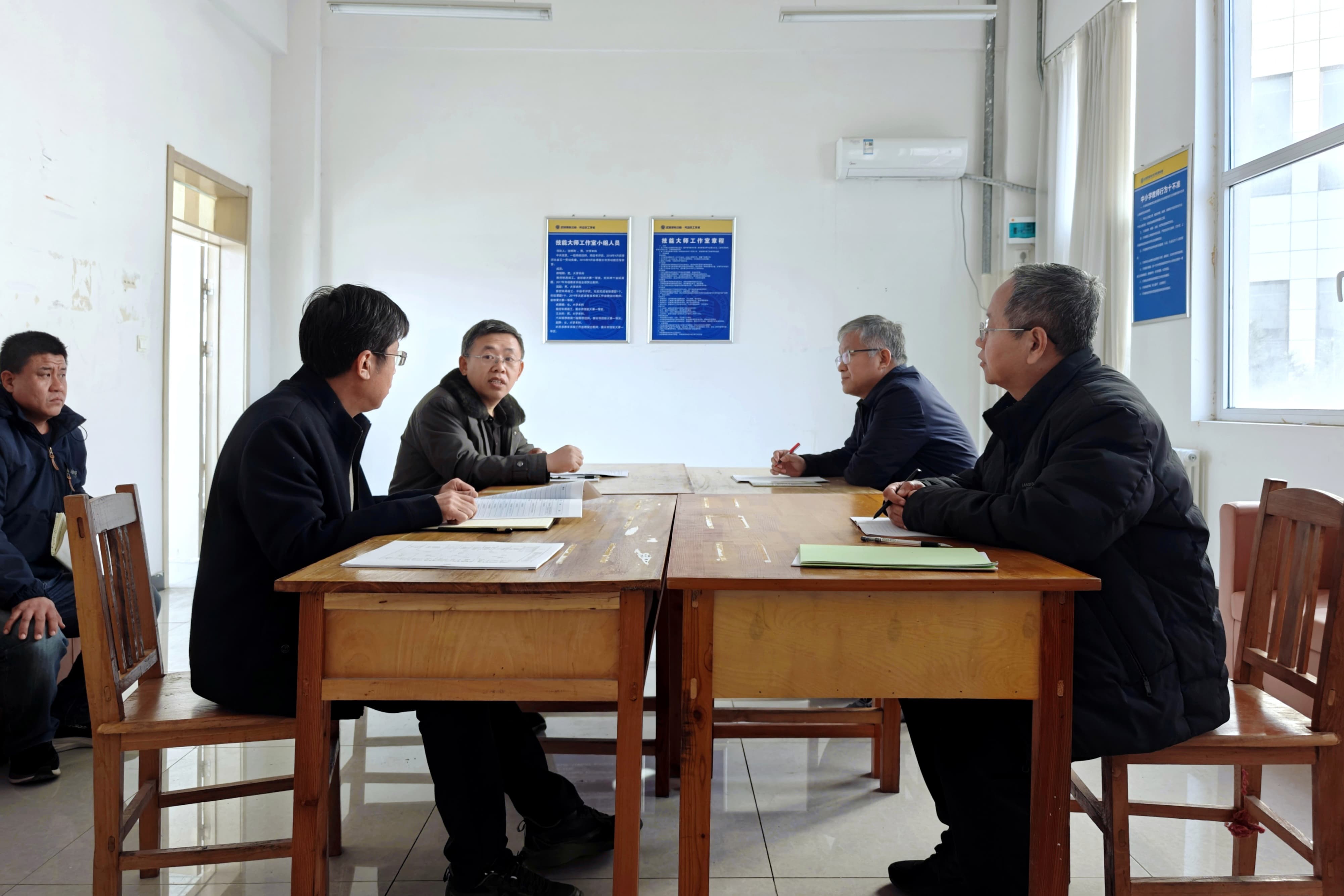 实训指导环节落幕,张明利大师与机械加工专业教师代表在二楼技能大师工作室开展深度座谈。校长张勇智、副校长马斌出席交流活动,大师结合自身从一线技术工人成长为行业领军人才的丰富经历,围绕“职业素养提升”“课程思政融合”“提升技能培训效果”等关键议题,与老师们展开热烈研讨。现场经验互鉴、气氛融洽。