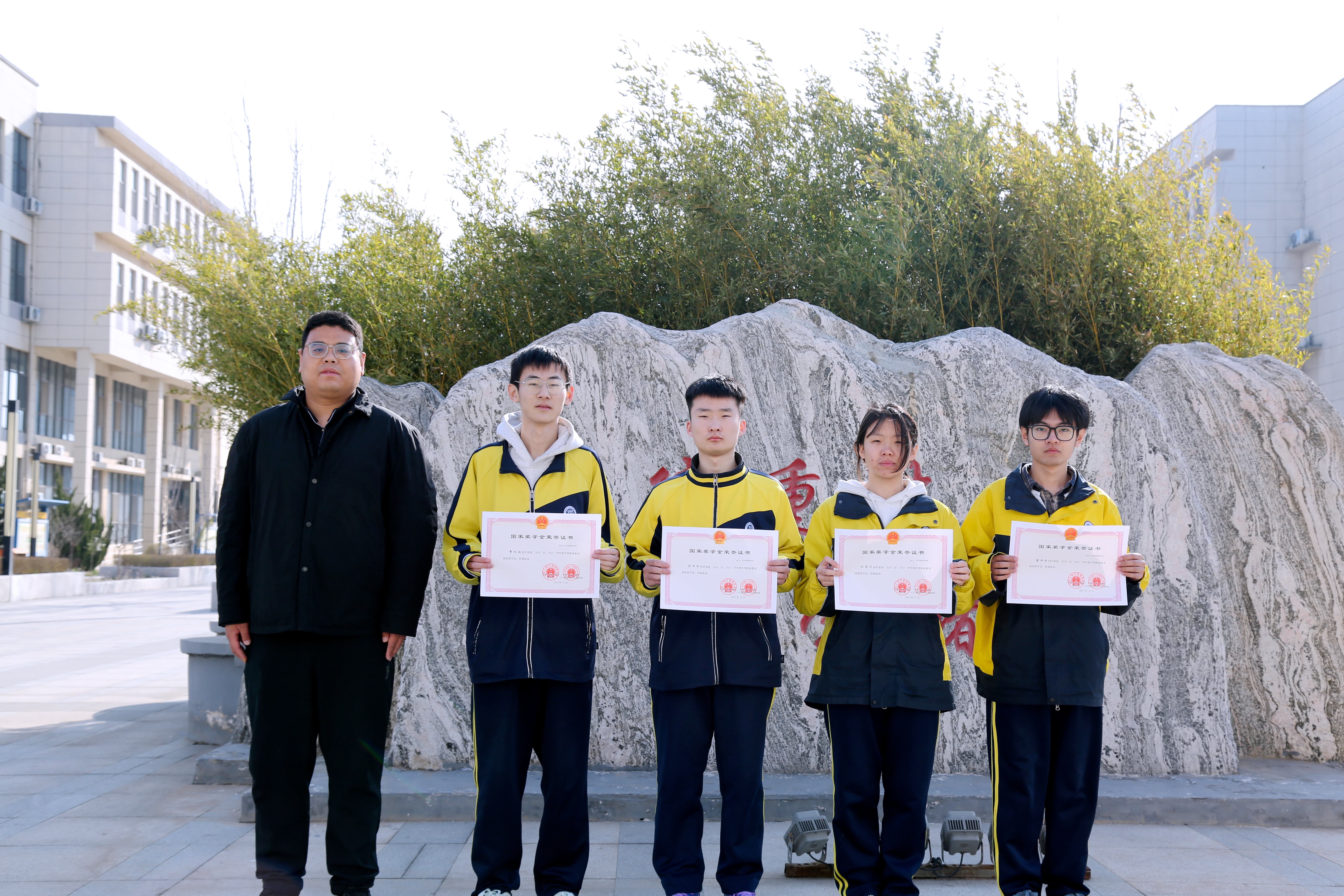 暖阳映照,风华正好。获奖学子在校训石前定格荣耀瞬间,与身后“崇德重技 修学储能”八个大字交相辉映,共同绘就出一幅初春时节生机盎然、昂扬向上的青春画卷。