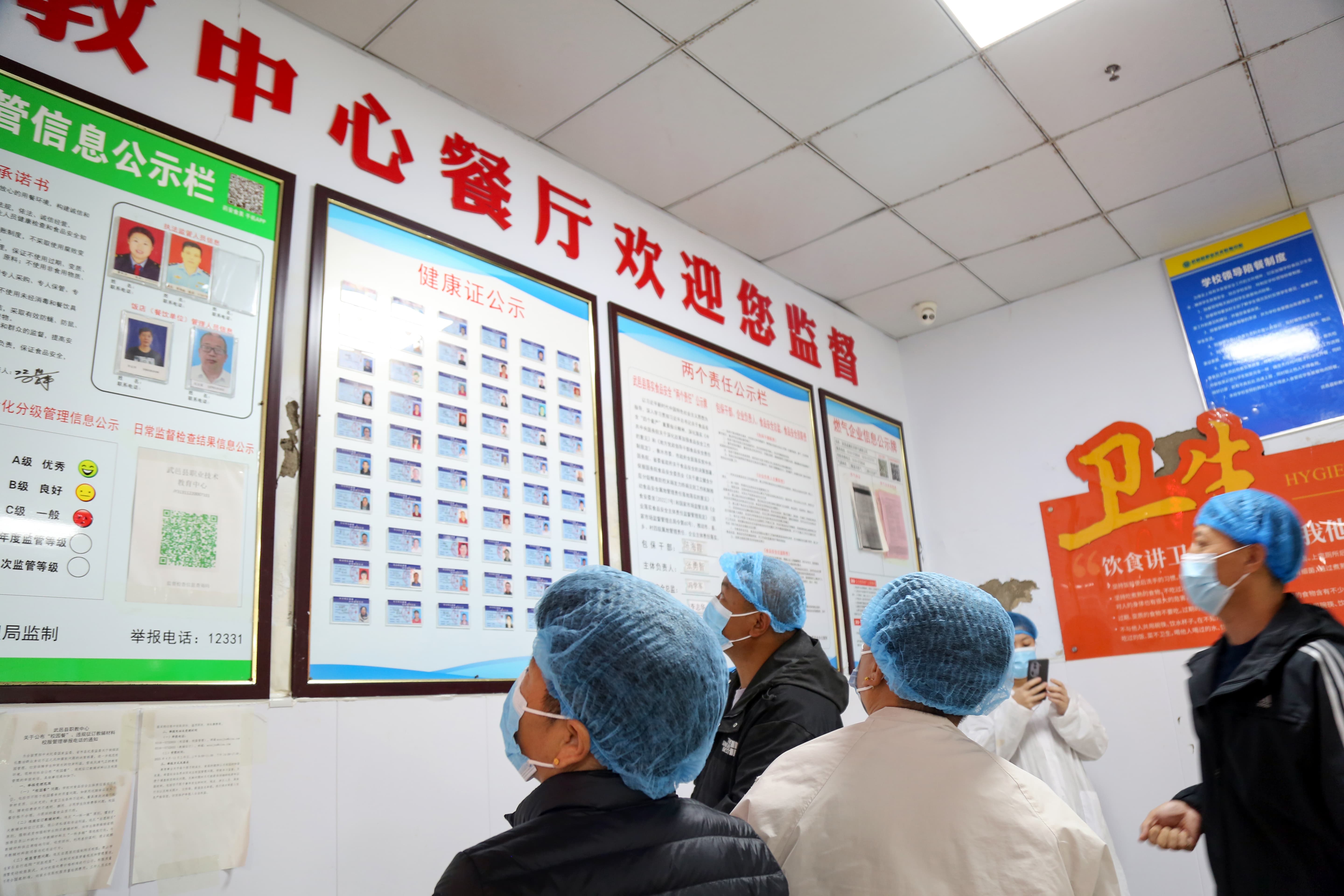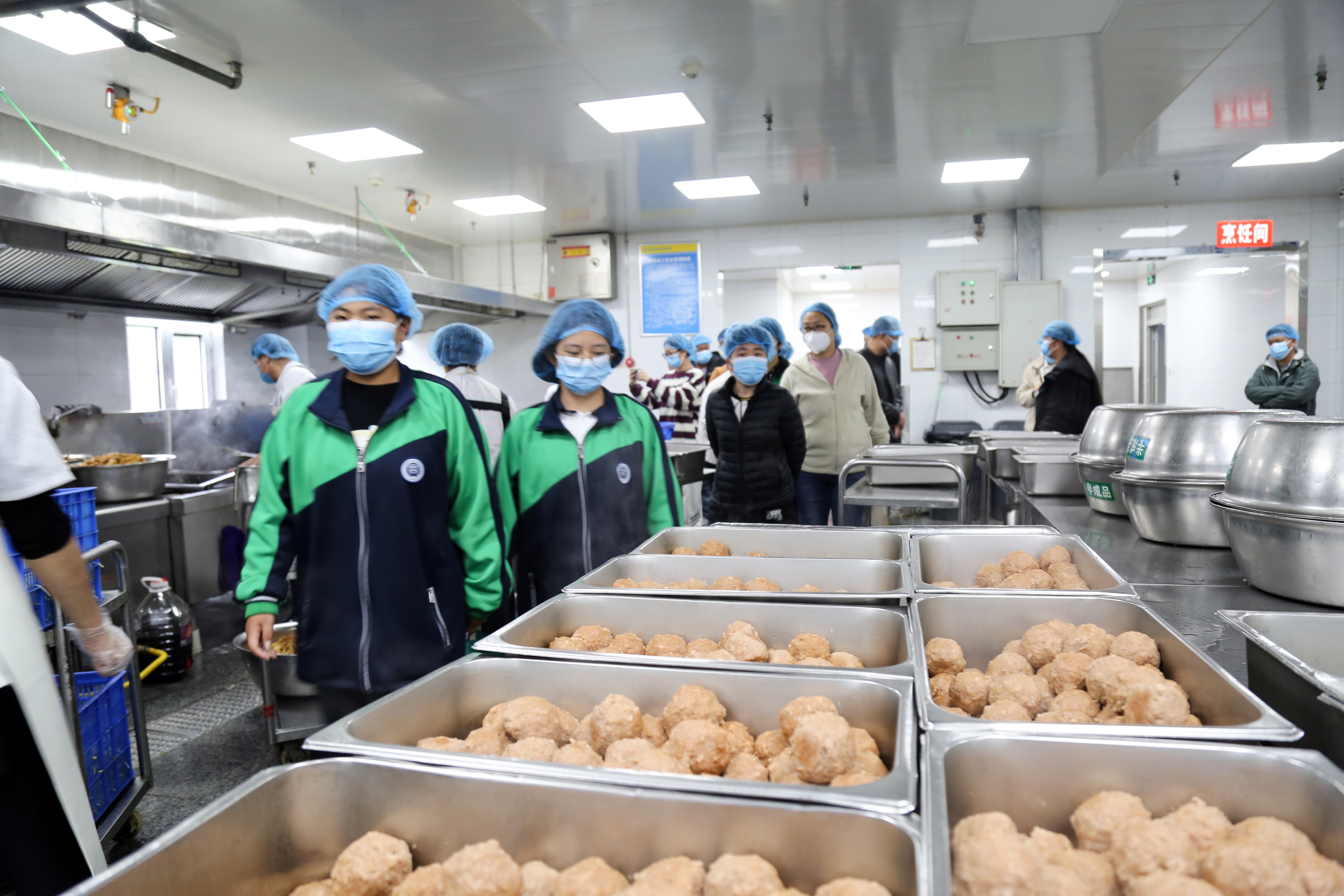 在参观库房环节家长代表拿起手机,对着食材检测记录表仔细拍摄:“没想到每批次蔬菜都有农残检测报告,连食用油的品牌和生产日期都登记得这么详细。”在后厨参观环节中,不锈钢操作台泛着明亮的光泽,厨师们统一穿着白色工作服、戴着厨师帽和一次性手套,正在有条不紊地准备午餐。 教师代表李老师则关注到操作间的监控设备:“360 度无死角监控,能实时看饭菜的制作过程”。天气转凉,餐厅在售饭台增加了保温设备,保证让每位学生都能吃到热乎的饭菜。